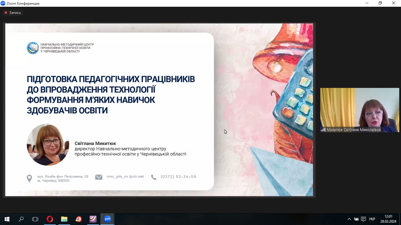 • Микитюк Світлана Миколаївна, директор Навчально-методичного центру професійно-технічної освіти у Чернівецькій області «Підготовка педагогічних працівників до впровадження технології формування м’яких навичок здобувачів освіти»;