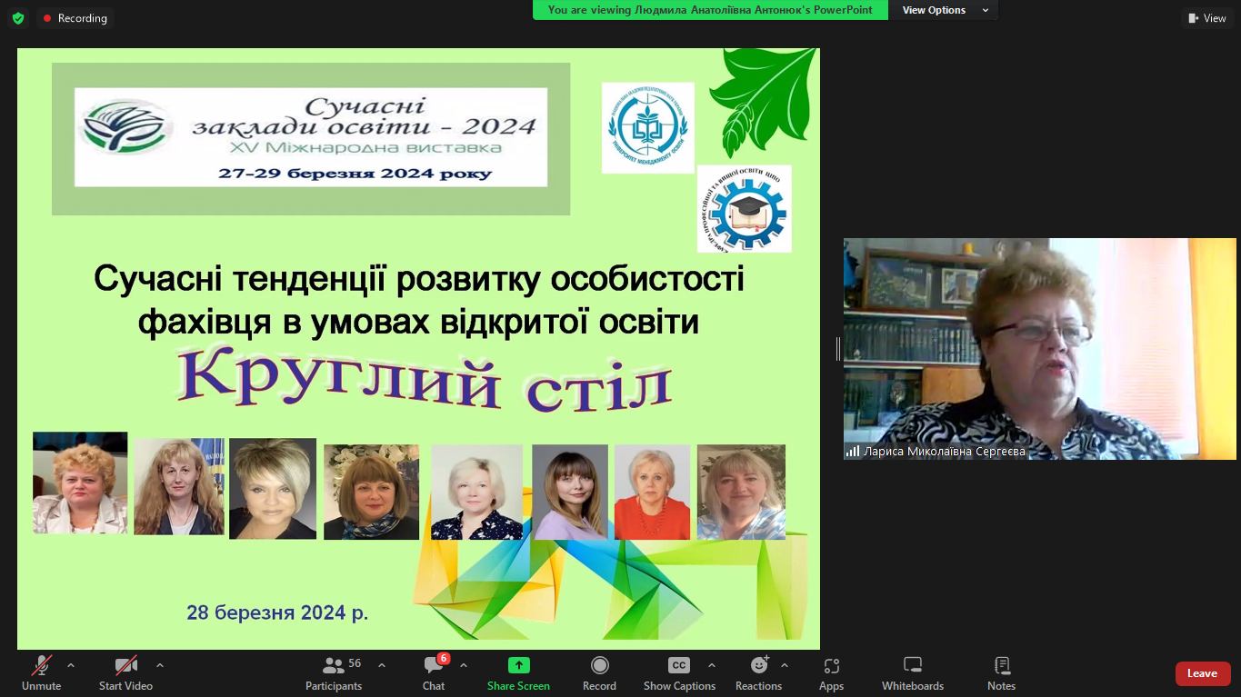 28 березня 2024 року відбувся круглий стіл «Сучасні тенденції розвитку особистості фахівця в умовах відкритої освіти» в межах головної події освітньої сфери України — ХV Міжнародної виставки «Сучасні заклади освіти – 2024».