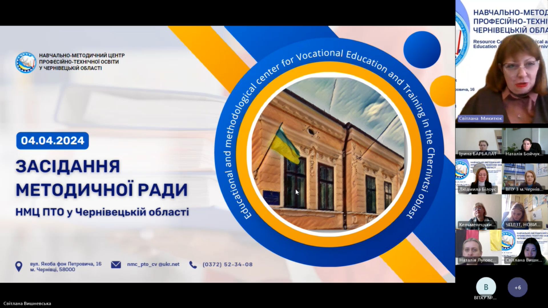 Відповідно до плану роботи Навчально-методичного центру професійно-технічної освіти у Чернівецькій області на 2024 рік, 4 квітня 2024 року в режимі онлайн відбулося засідання методичної ради НМЦ ПТО у Чернівецькій області.