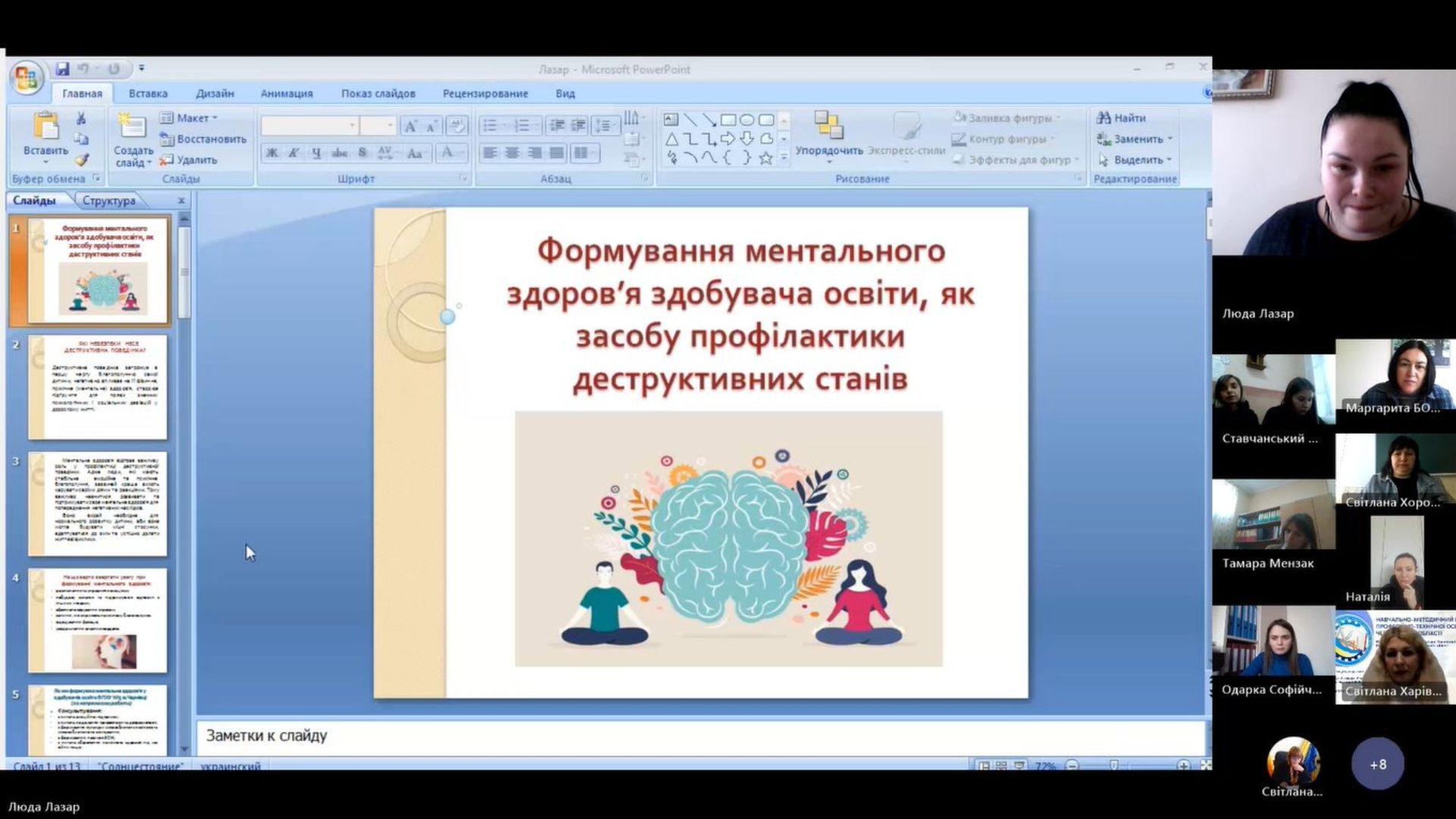 🔷 Корисним досвідом з тематики «Формування ментального здоров’я здобувача освіти, як засобу профілактики деструктивних станів», поділилась Людмила Лазар, соціальний педагог Вищого професійного художнього училища №5 м. Чернівці.