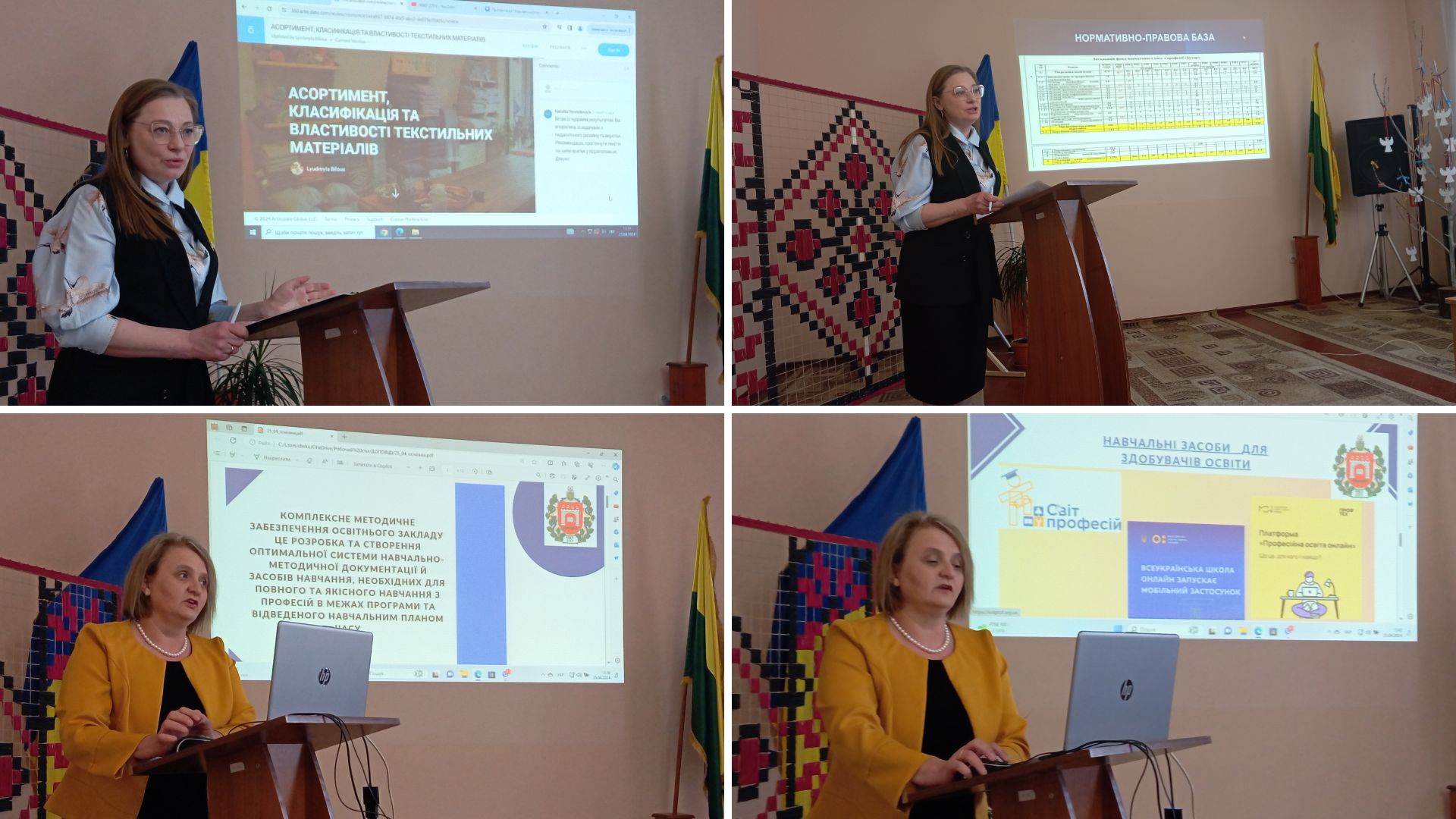 🔶 Про позитивні практики створення електронної бази навчально-плануючої документації з презентацією моделей електронних баз КМЗ з професій доповіли: Тетяна Іванівна Верстюк, заступник директора з навчально-виробничої роботи ЧВКУ ДТЕУ та Лідія Григорівна Яковина, заступник директора з навчально-виробничої роботи Сокирянського ВПУ.