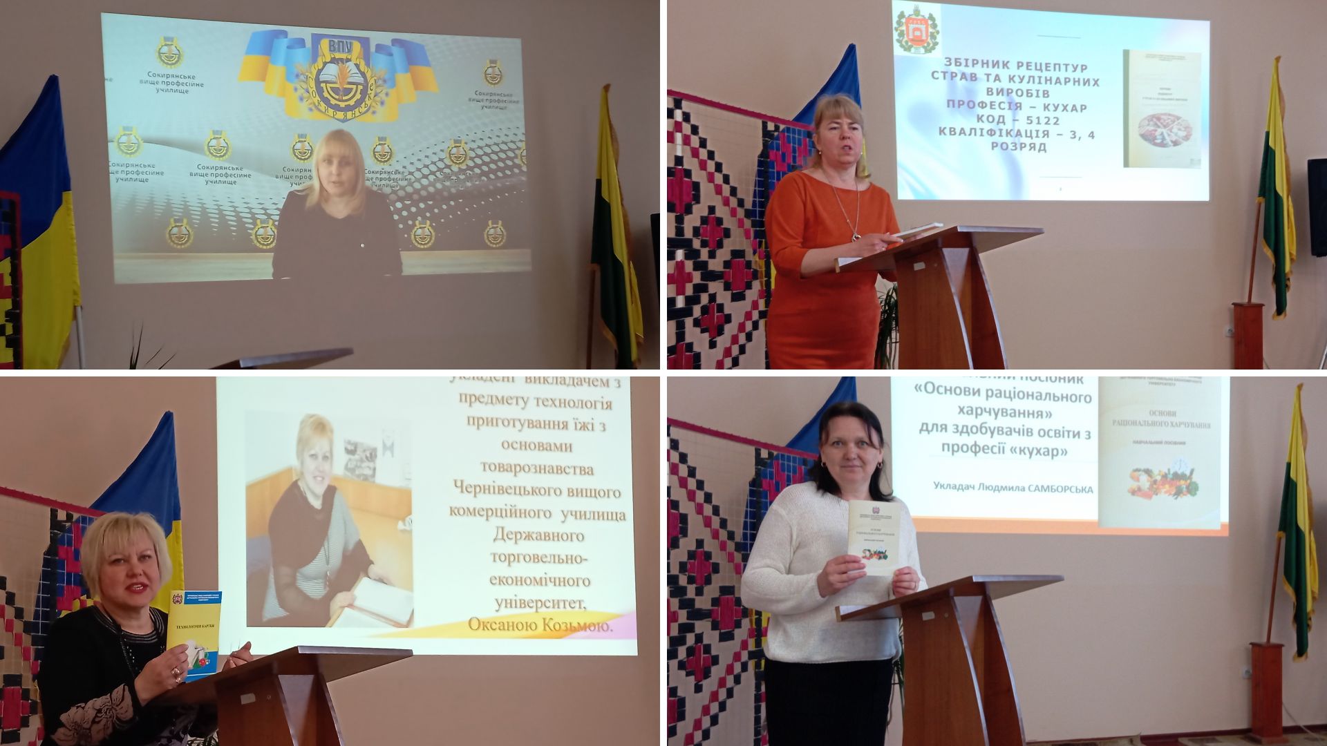 🔶 Презентували освітні матеріали з професії “Кухар, кондитер” Марія Іванівна Белан, Оксана Аурелівна Козьма, Людмила Іванівна Самборська викладачі предметів професійно-теоретичної підготовки ЧВКУ ДТЕУ.