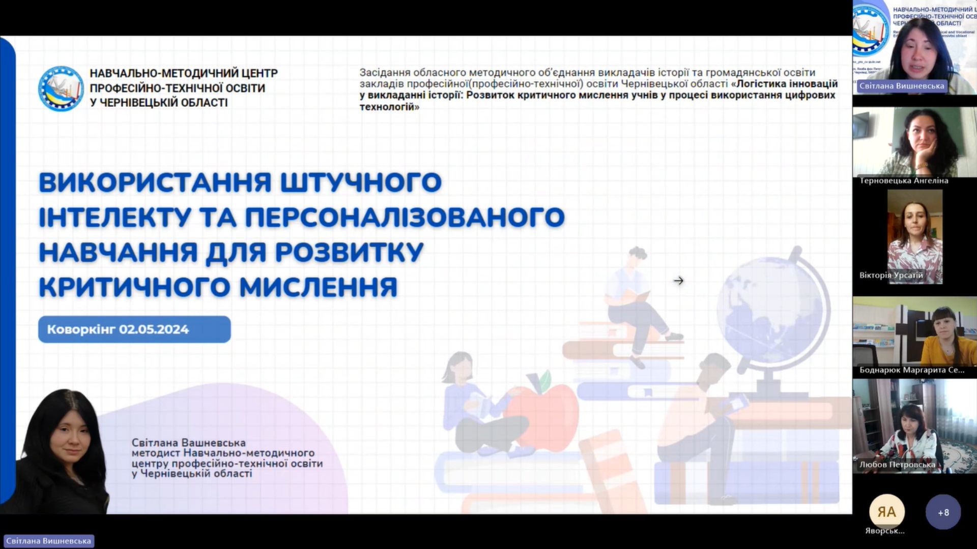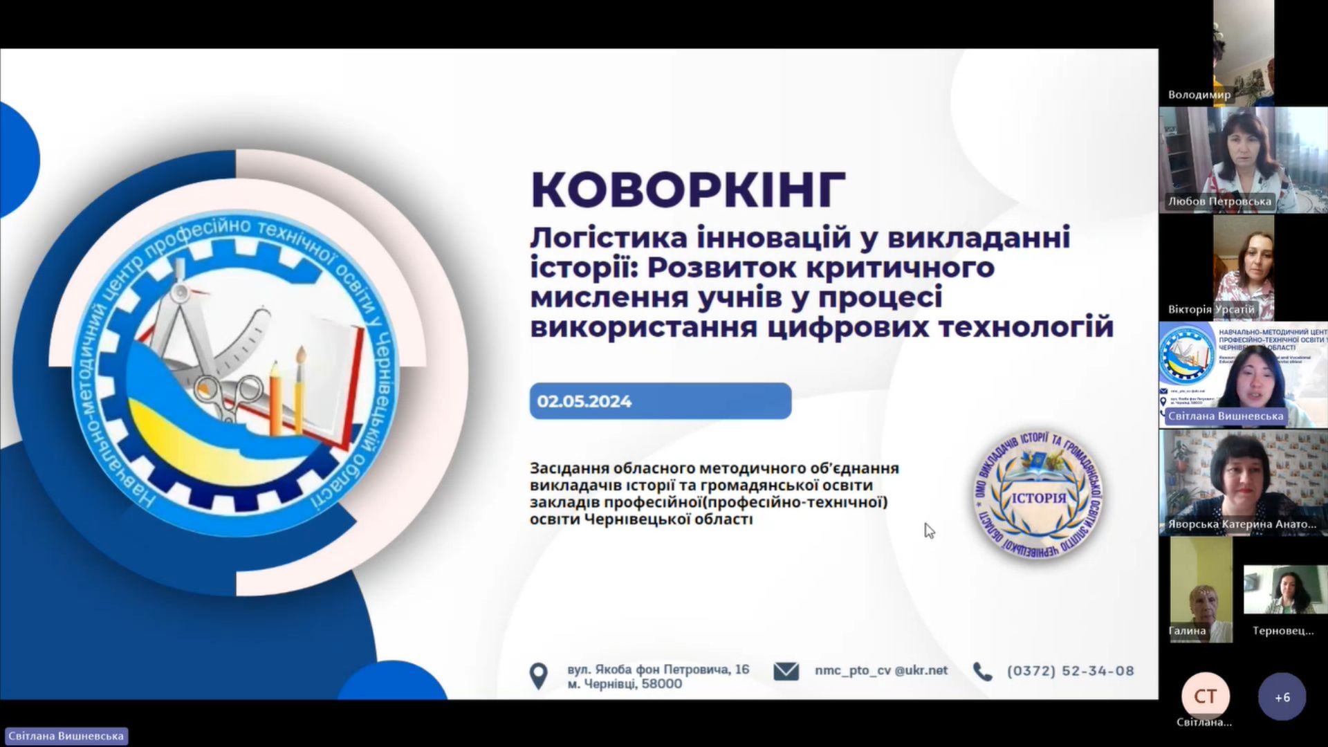 2 травня 2024 року відповідно до плану роботи Навчально-методичного центру професійно-технічної освіти у Чернівецькій області на платформі MS Teams відбулося засідання обласного методичного об’єднання викладачів історії та громадянської освіти закладів професійної (професійно-технічної) освіти Чернівецької області — «Логістика інновацій у викладанні історії: Розвиток критичного мислення учнів у процесі використання цифрових технологій».