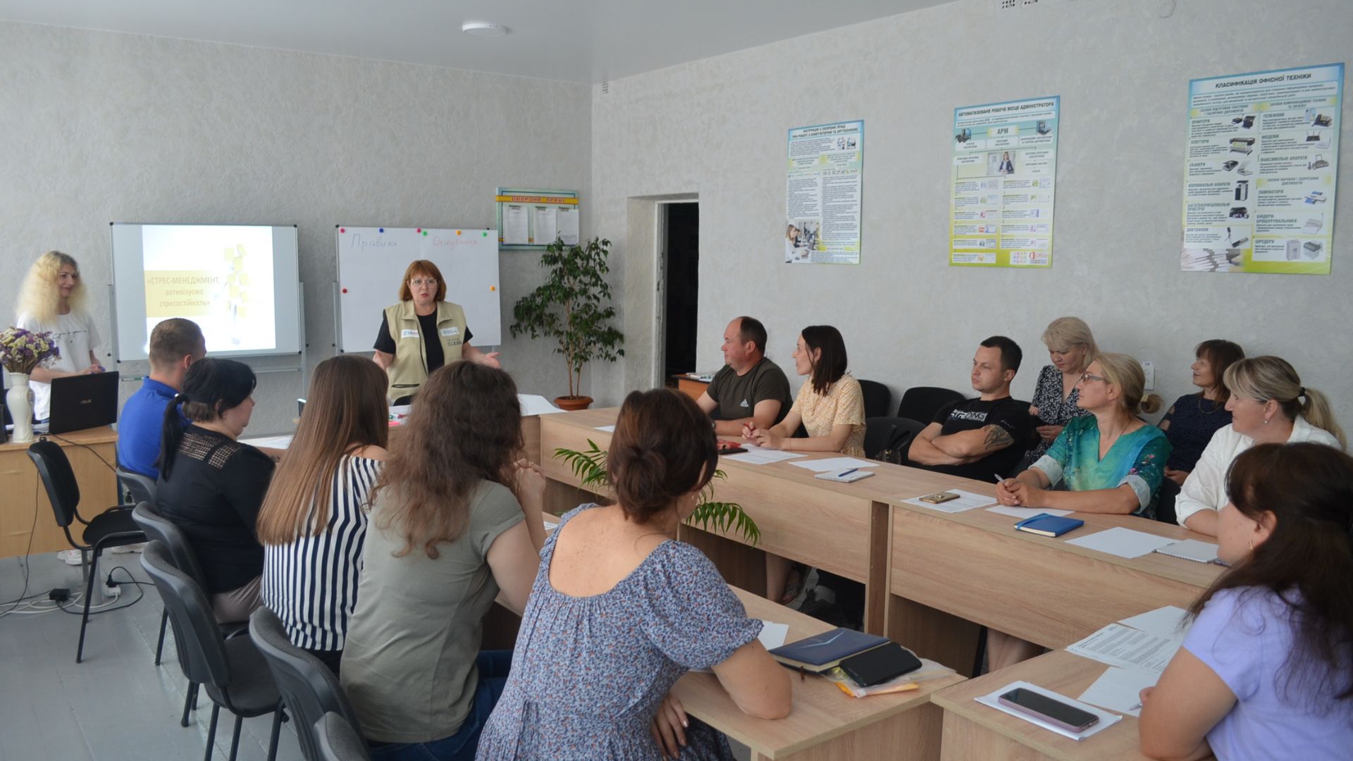 18 червня 2024 року Світлана Микитюк, директор Навчально-методичного центру професійно-технічної освіти у Чернівецькій області та методист Центру, Світлана Харівська, провели тренінг «Стрес-менеджмент, активізуємо стресостійкість» на базі Сокирянського вищого професійного училища. Учасниками тренінгу були жителі громади із числа внутрішньо переміщених осіб, мешканці громади, студенти, викладачі та всі охочі, кого цікавить тема менеджменту та подолання стресу.