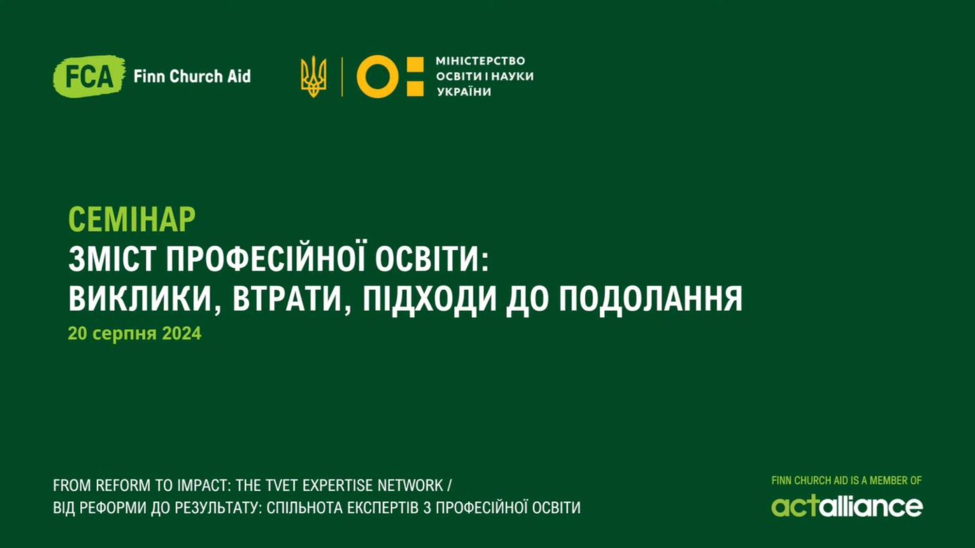 20-21 серпня делегація педагогічних працівників професійної освіти Чернівецької області перебуває з дводенним візитом у Львові на семінар «Зміст професійної освіти: виклики, втрати, підходи до подолання», який організовано Міністерство освіти і науки України за підтримки Finn Church Aid Fund (FCA). https://www.youtube.com/live/q7EeNxT3Bjs