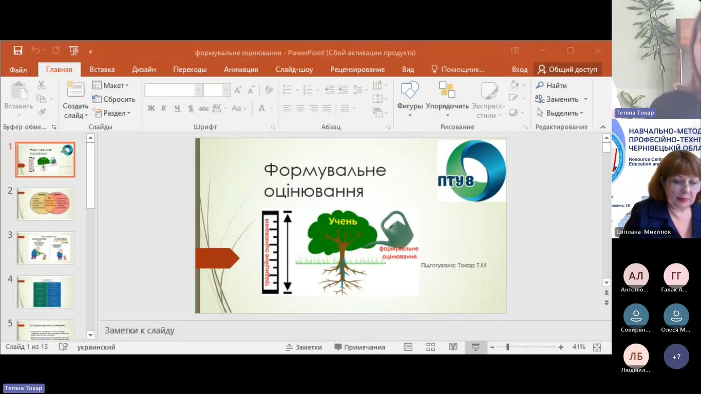 Тетяна Токар, викладач іноземних мов ПТУ № 8 м. Чернівці, ознайомила учасників з особливостями застосування формувального оцінювання під час викладання іноземних мов.