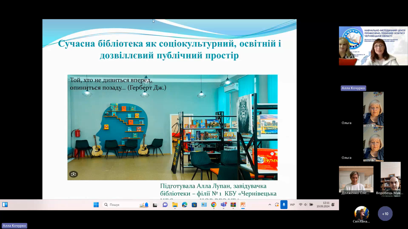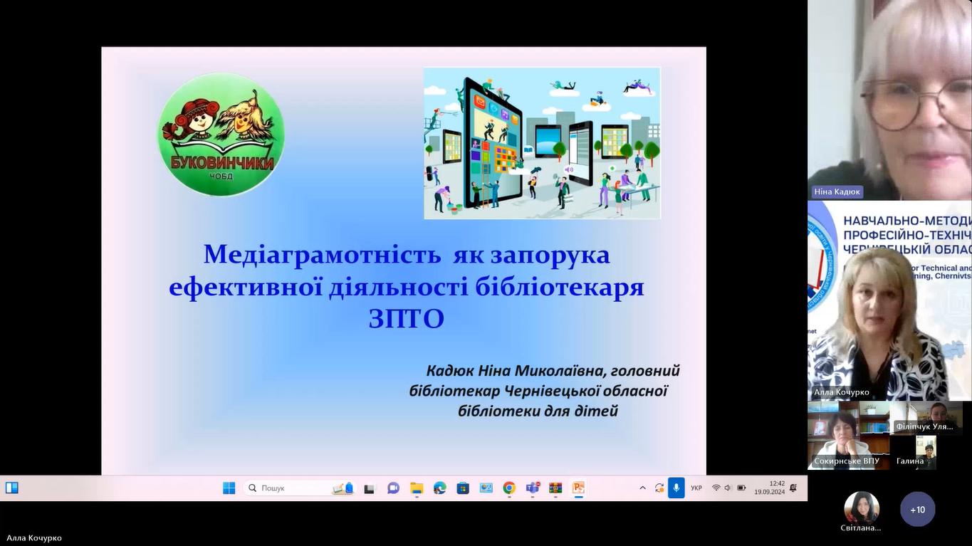Нараду провела методист НМЦ ПТО у Чернівецькій області Алла Кочурко. Засідання відбулося за участі бібліотечних фахівців Чернівецької централізованої бібліотечної системи, Чернівецької обласної бібліотеки для дітей та бібліотекарів ЗП(ПТ)О.