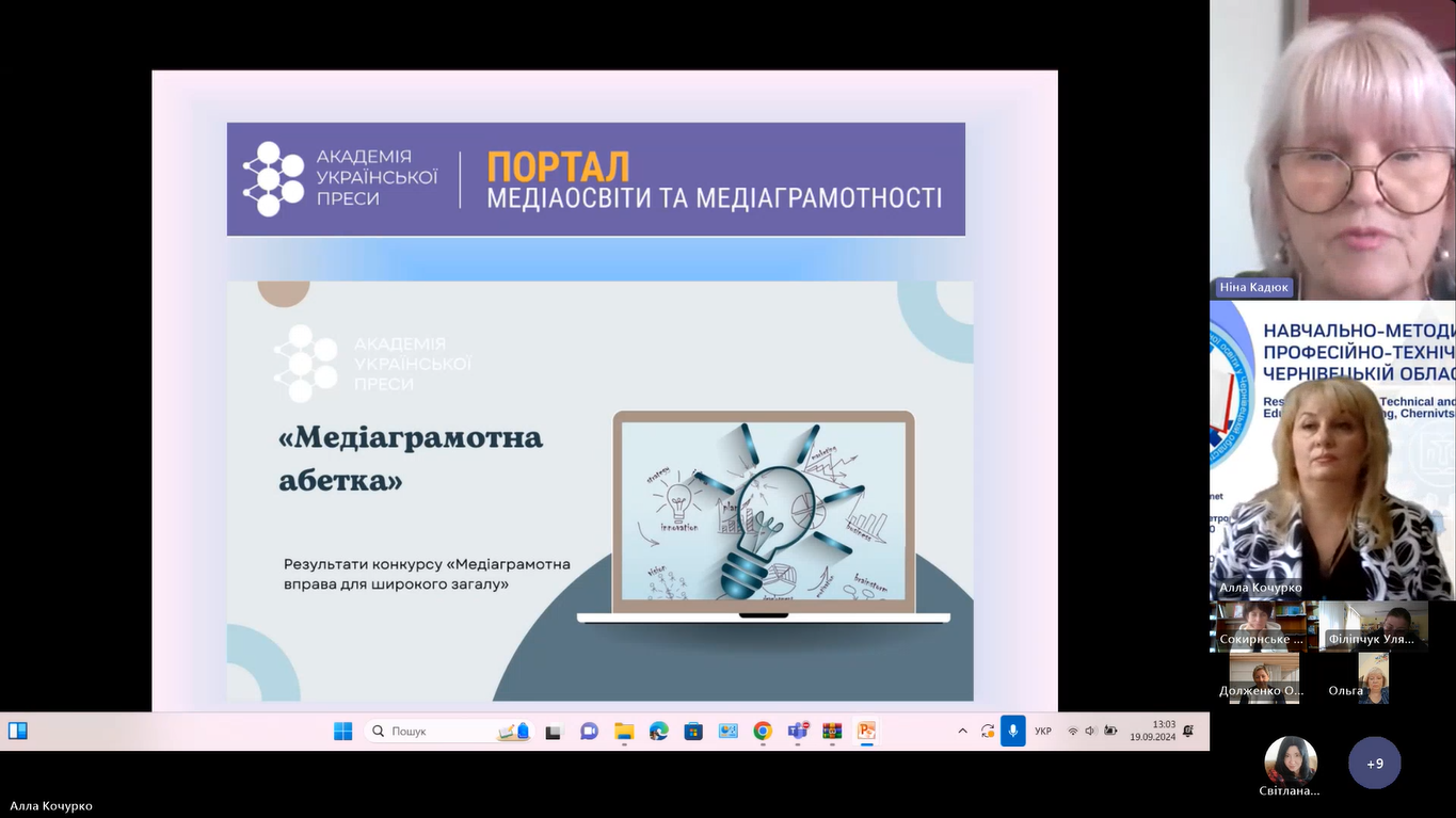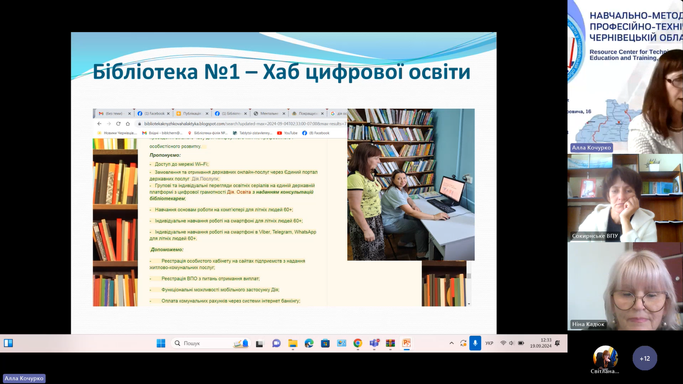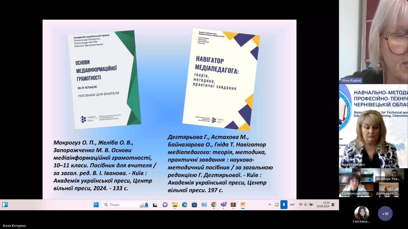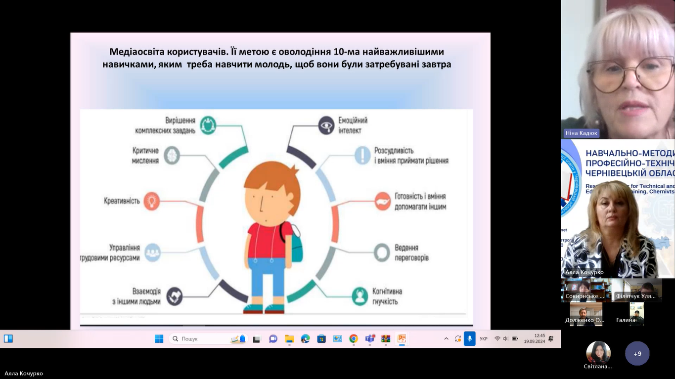 Основна увага була зосереджена також на «Особливостях організації бібліотечної роботи ЗП(ПТ)О області в умовах воєнного часу на 2024/2025 н.р.», про які розповіла методист НМЦ ПТО у Чернівецькій області Кочурко Алла Валеріївна.