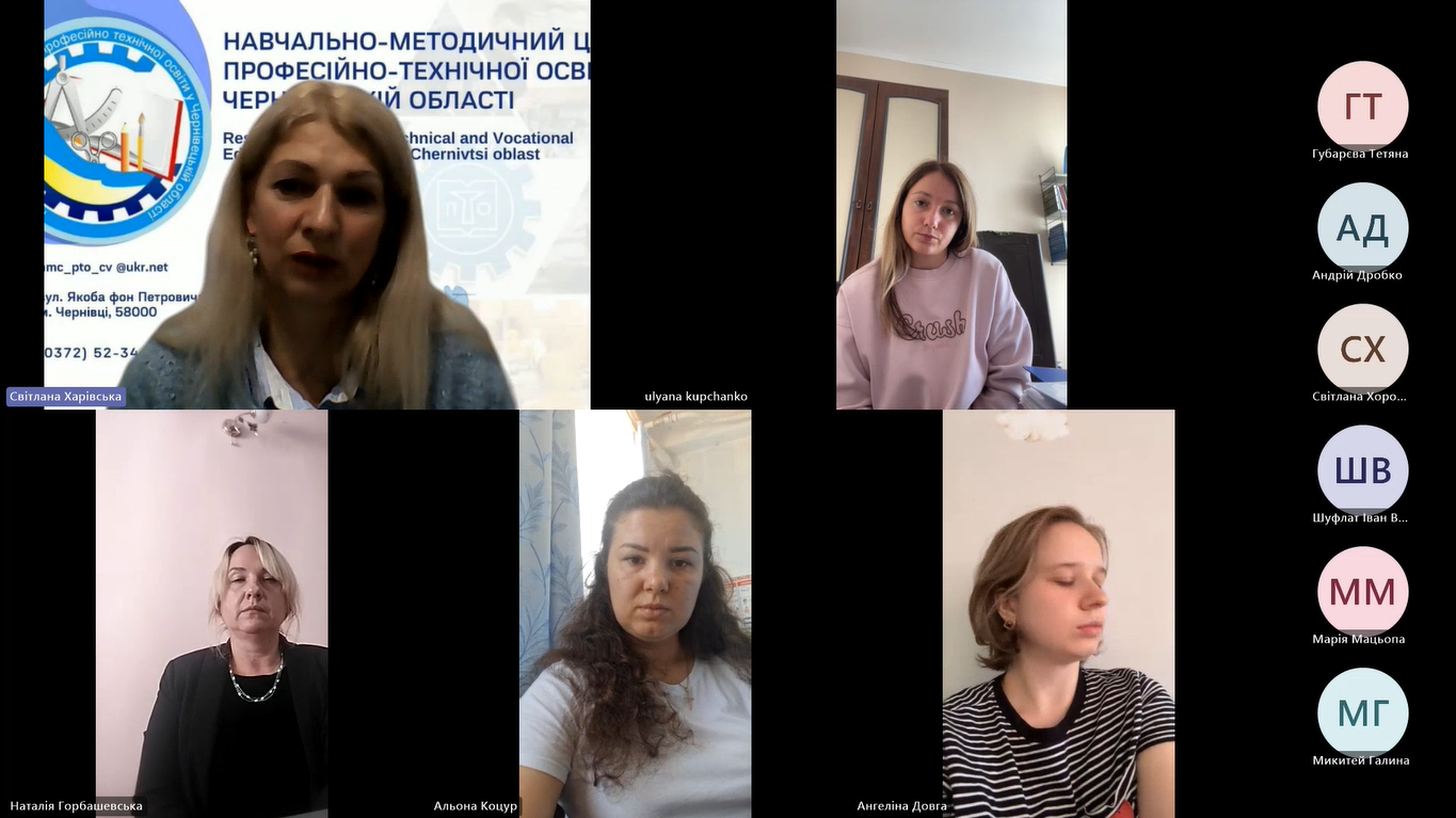 Учасників засідання привітала директорка НМЦ ПТО у Чернівецької області Світлана Микитюк та у рамках засідання підкреслила про важливість діяльності працівників психологічної служби в системи професійної (професійно-технічної) освіти області, закцентувала увагу фахівців на основних пріоритетних напрямах роботи з питань збереження ментального здоров’я та розвитку резильєнтності в усіх учасників освітнього процесу в період війни Наголосила на важливості здійснення соціально-педагогічної та психологічної підтримки здобувачів освіти з числа ВПО, просвітницько-профілактичної роботи зі здобувачами освіти, щодо формування навичок здорового способу життя, запобіганню булінгу та формування цінності життя.
