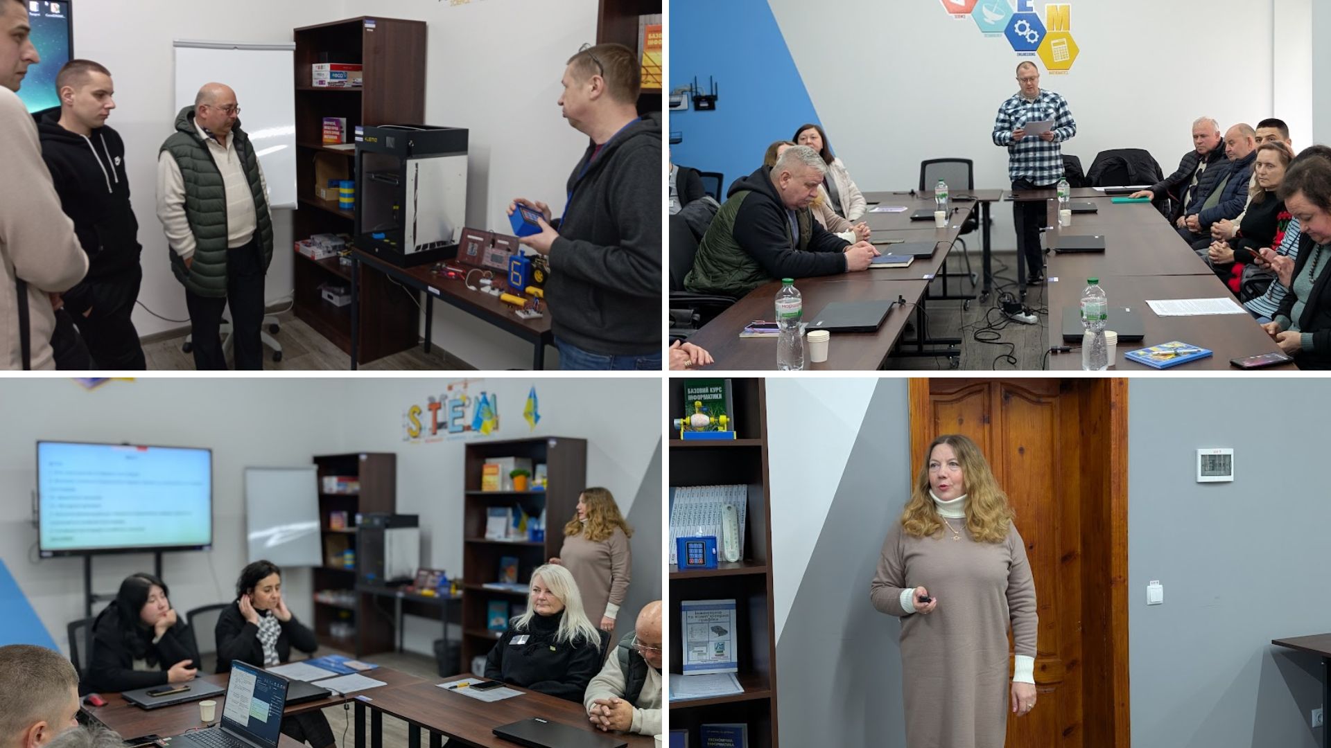 Валентин Флорескул, викладач інформатики та професійно-теоретичної підготовки ЧВПУР, презентував роботу STEM-кабінету — сучасного освітнього простору, оснащеного інноваційними технологіями для проведення практичних занять з науки, техніки, інженерії, математики та інформатики. Учасники заходу дізнались про можливості використання 3D-принтера, робототехнічних конструкторів та симуляторів для моделювання реальних технічних процесів. Особливий акцент зроблено на інтеграції STEM у навчальні дисципліни, розвиток практичних навичок здобувачів освіти та підготовку їх до майбутньої професійної діяльності в технічних галузях.
