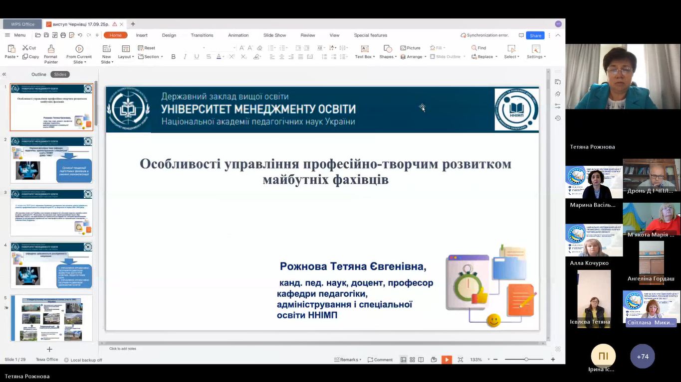 Тетяна Рожнова, професор кафедри педагогіки, адміністрування і спеціальної освіти Навчально-наукового інституту менеджменту і психології ДЗВО «Університет менеджменту освіти» НАПН України, кандидат педагогічних наук, доцент, докторант, розповіла про особливості управління професійно-творчим розвитком майбутніх фахівців.