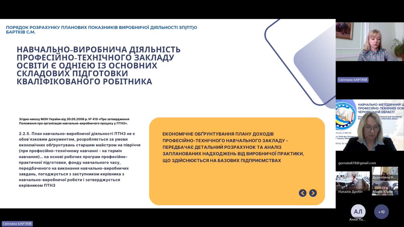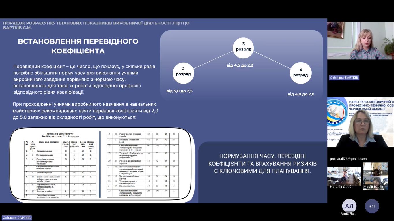 - Світлани БАРТКІВ, старшого майстра ВПХУ № 5, яка надала практичні поради щодо порядку розрахунку планових показників виробничої діяльності ЗП(ПТ)О.