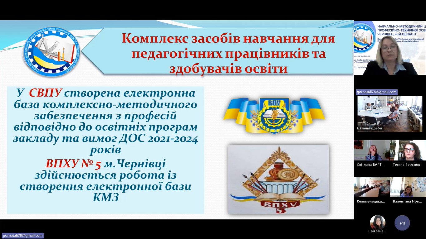 - Тетяни ВЕРСТЮК, заступника директора з НВР ЧВКУ ДТЕУ. яка поділилась досвідом застосування електронного контенту комплексно-методичного забезпечення професій ЗПО.