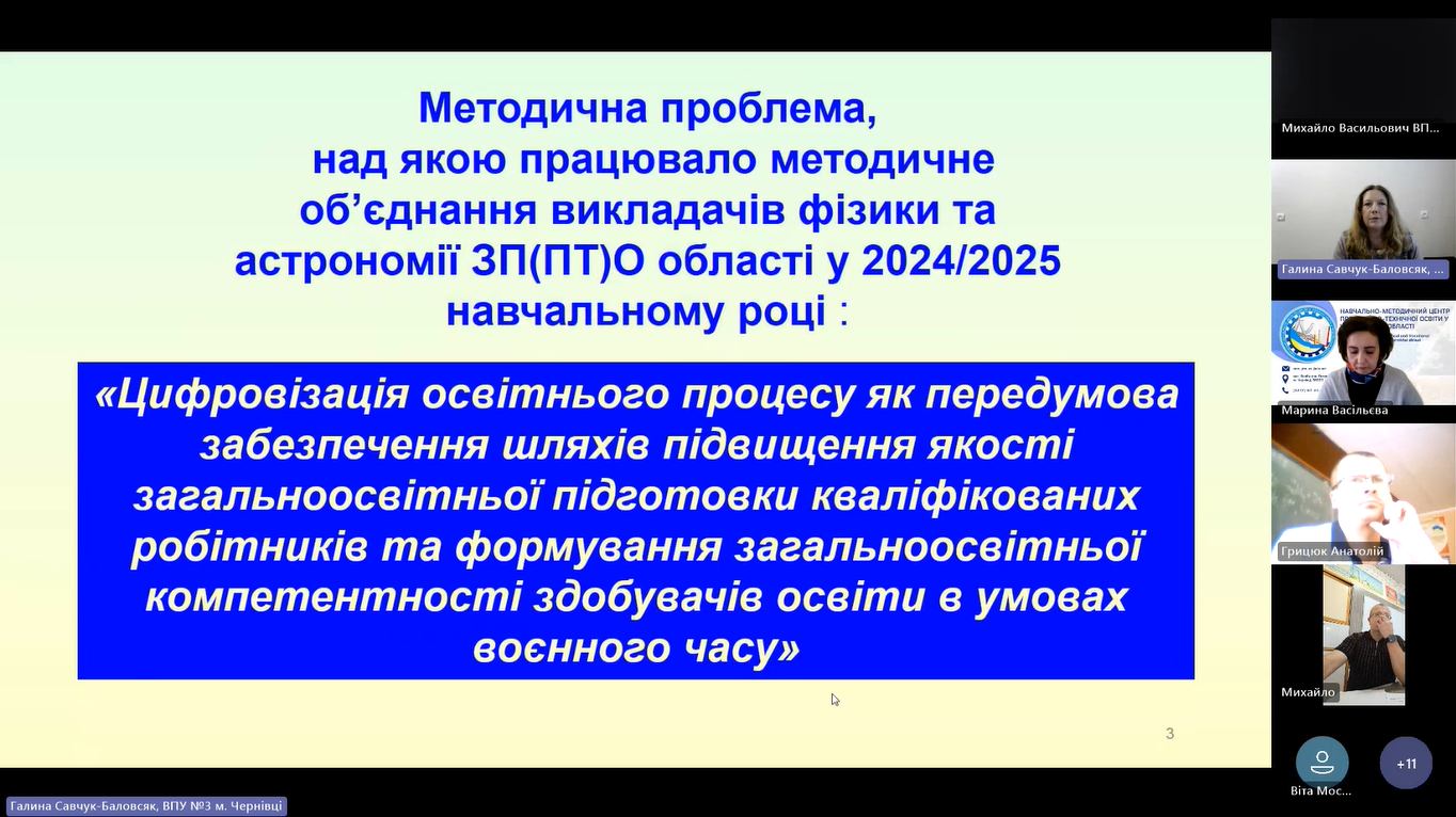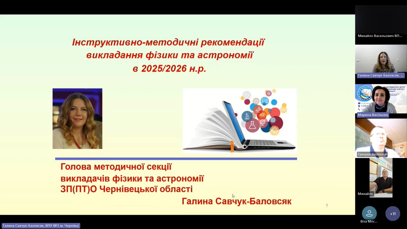 - Галина САВЧУК-БАЛОВСЯК, викладач фізики та астрономії, голова. Методичної секції викладачів фізики та астрономії ЗП(ПТ)О виступила з темою «Інструктивно – методичними рекомендації викладання фізики та астрономії».