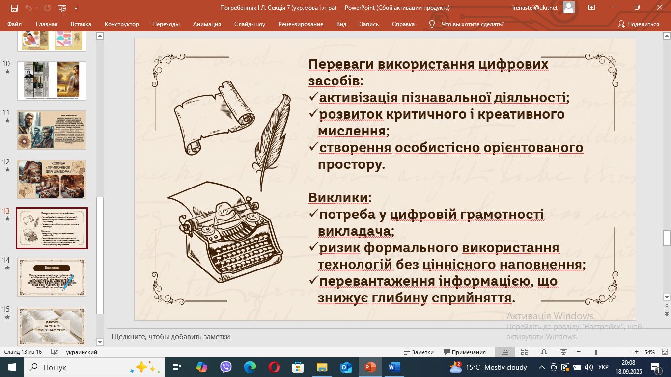 «Роль цифрових засобів навчання у формуванні ціннісних орієнтацій здобувачів освіти: теорія, практика, досвід» окреслила кандидат філологічних наук, викладач української мови і літератури Погребенник І.Л.