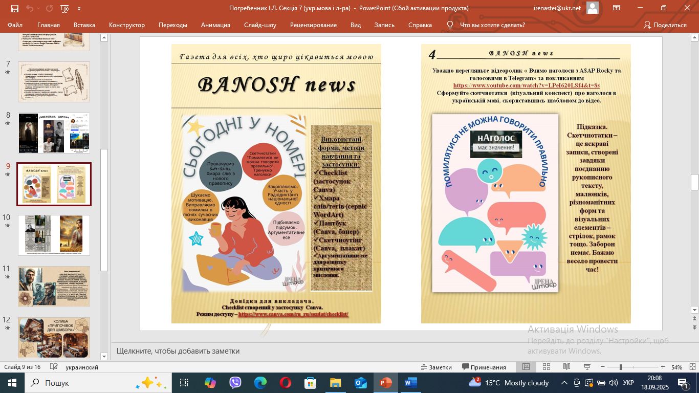 Діяльнісний підхід до вивчення предметів мовно-літературної галузі у сучасному освітньому вимірі з переглядом презентації висвітлила учасникам засідання доцент кафедри методики викладання суспільно-гуманітарних дисциплін ІППО ЧО Федунович-Швед О.Т.
