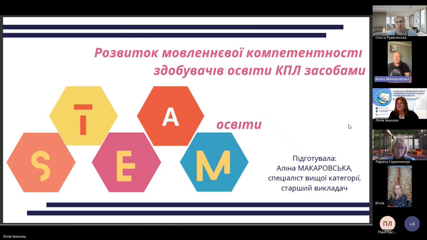 Практичний кейс з розвитку мовленнєвої компетентності здобувачів освіти засобами STEAM представила Аліна Анатоліївна (викладач КПЛ).