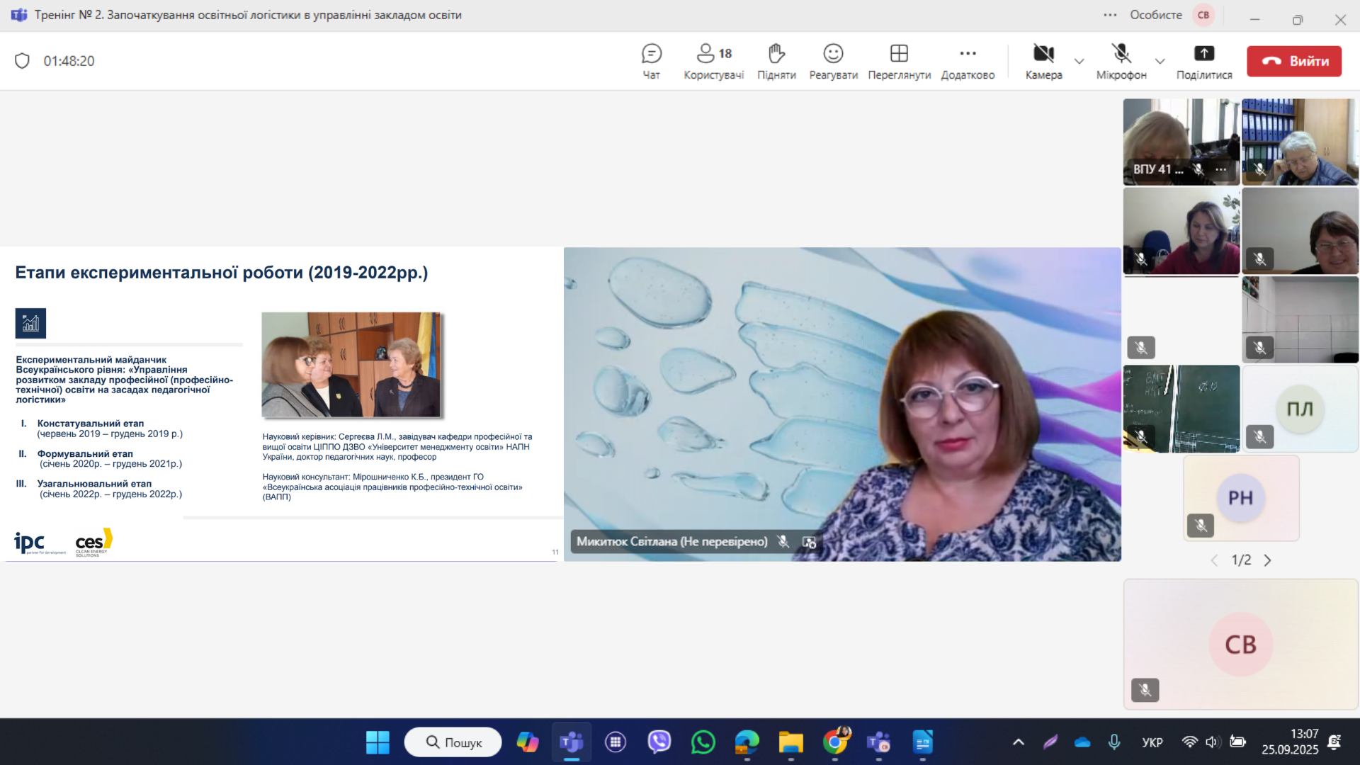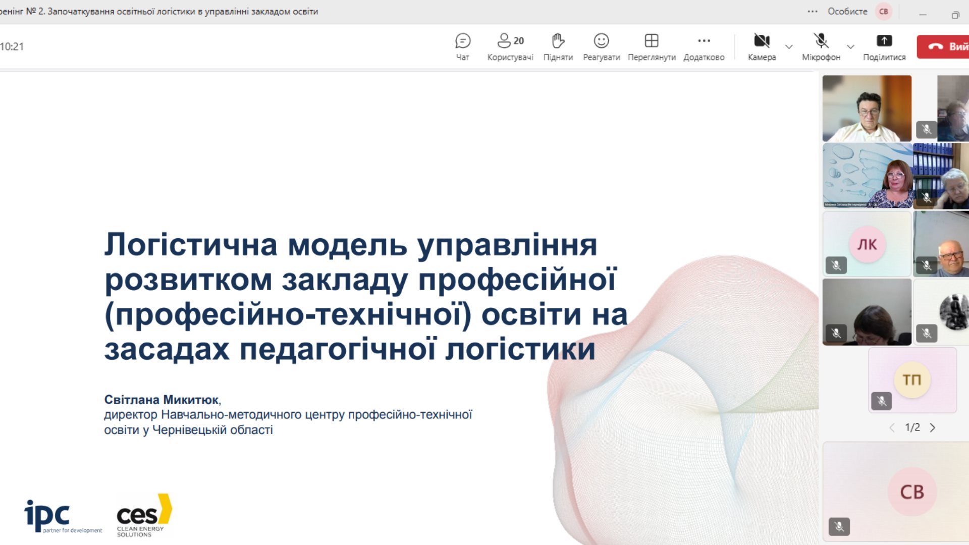 Під час виступу, Світлана Микитюк, представила досвід реалізації експериментального майданчика Всеукраїнського рівня «Управління розвитком закладу професійної (професійно-технічної) освіти на засадах педагогічної логістики» (науковий керівник ‒ професор Лариса Сергеєва) та ознайомила присутніх з результатами впровадження моделі управління розвитком ЗП(ПТ)О на засадах педагогічної логістики на базі закладів області.