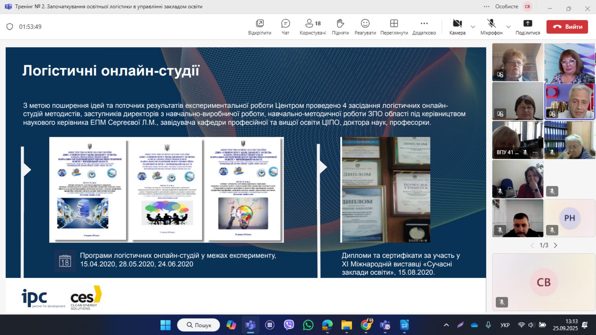 25 вересня 2025 року Світлана Микитюк, директор Навчально-методичного центру професійно-технічної освіти у Чернівецькій області, представила практичний кейс «Можливості та впровадження моделі розвитку освітньо-логістичних систем в освітньому процесі закладу професійної освіти» для учасників Проєкту «Професійна освіта у Східному партнерстві» (в межах Проєкту передбачено створення центрів професійної досконалості професійної (професійно-технічної) освіти (ЦПД) на базі двох ПТНЗ) — Квасилівського професійного ліцею, селище Квасилів (Рівненська область) та Вищого професійного училища № 41, м. Тульчин (Вінницька область).