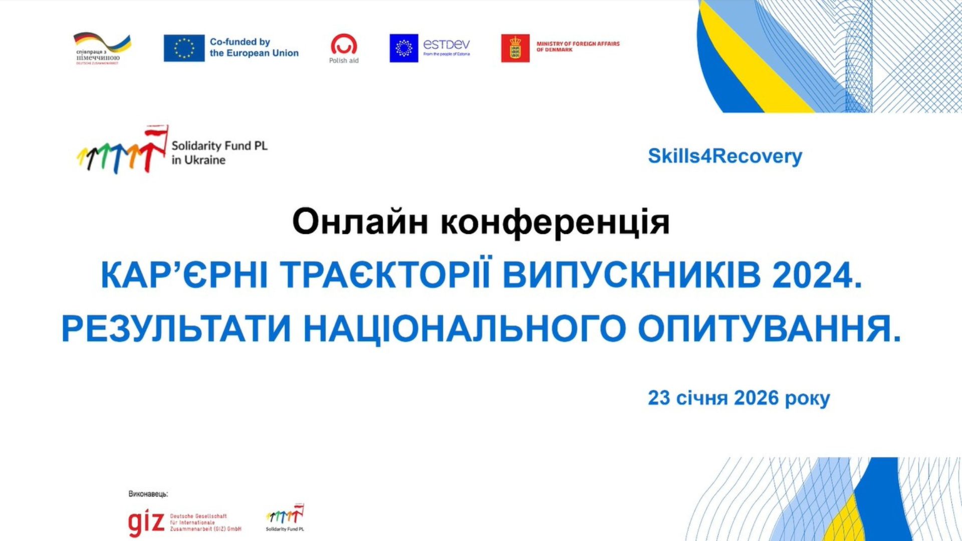 Навчально-методичний центр професійно-технічної освіти у Чернівецькій області та заклади професійної освіти області долучилися до онлайн-конференції «Кар’єрні траєкторії випускників 2024. Результати національного опитування», яка відбулася 23 січня 2026 року за організації Міністерства освіти і науки України у межах програми «Skills4Recovery».