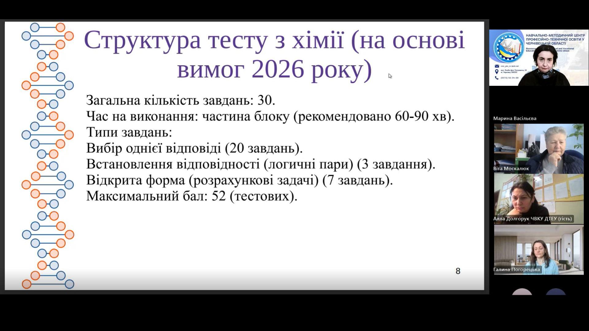 Дмитро ДАНЕЛЮК, викладач хімії, біології та екології ВПУ №3, голова обласного методичного об’єднання викладачів хімії, біології та екології закцентував увагу колег на особливостях проведення НМТ- 2026 та підготовки студентів до складання НМТ з хімії та біології.
