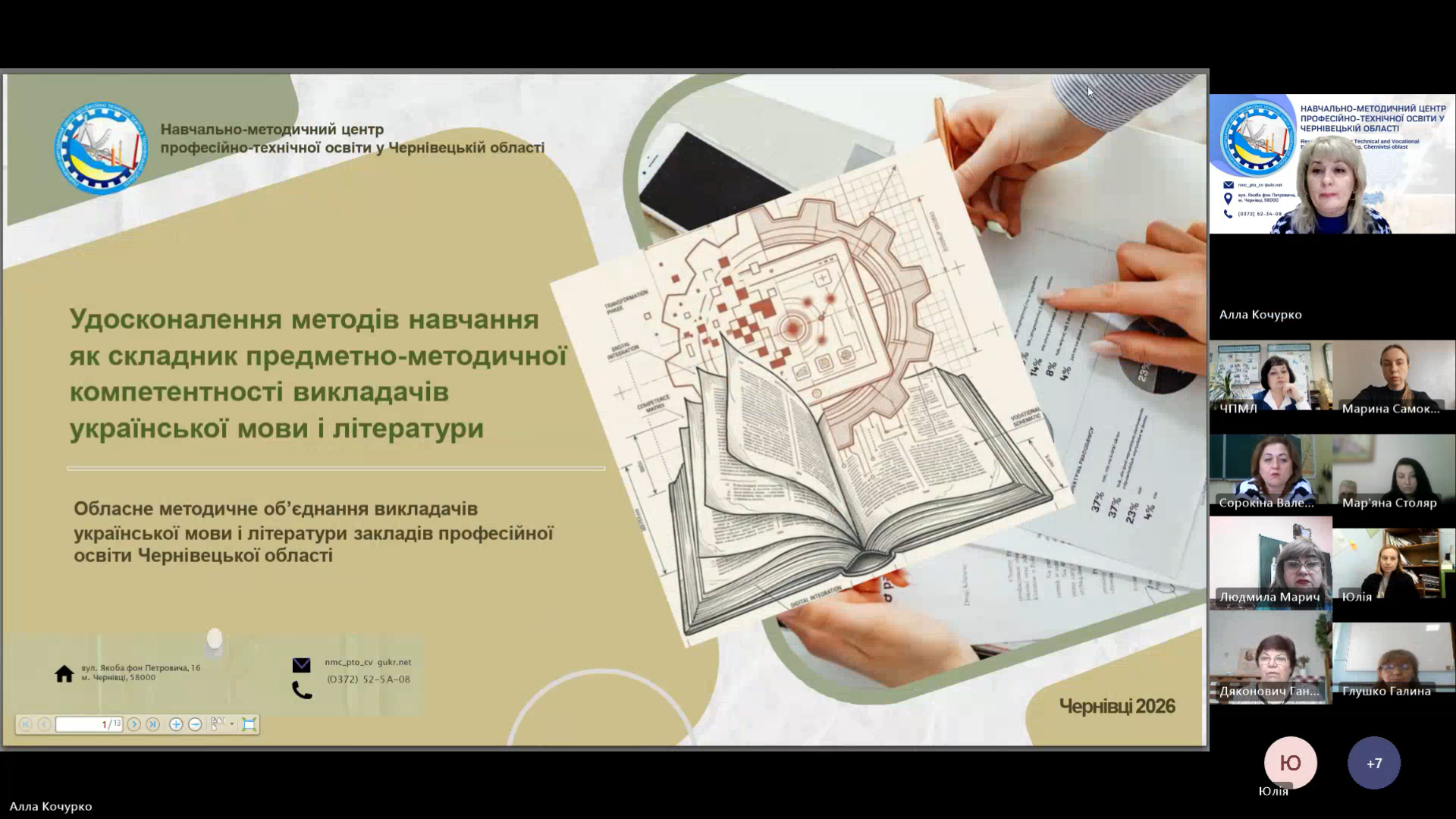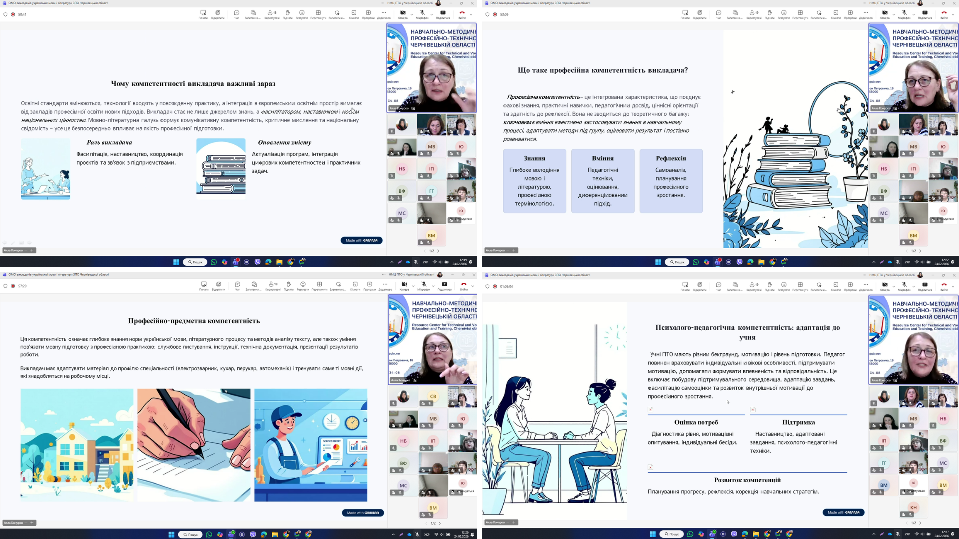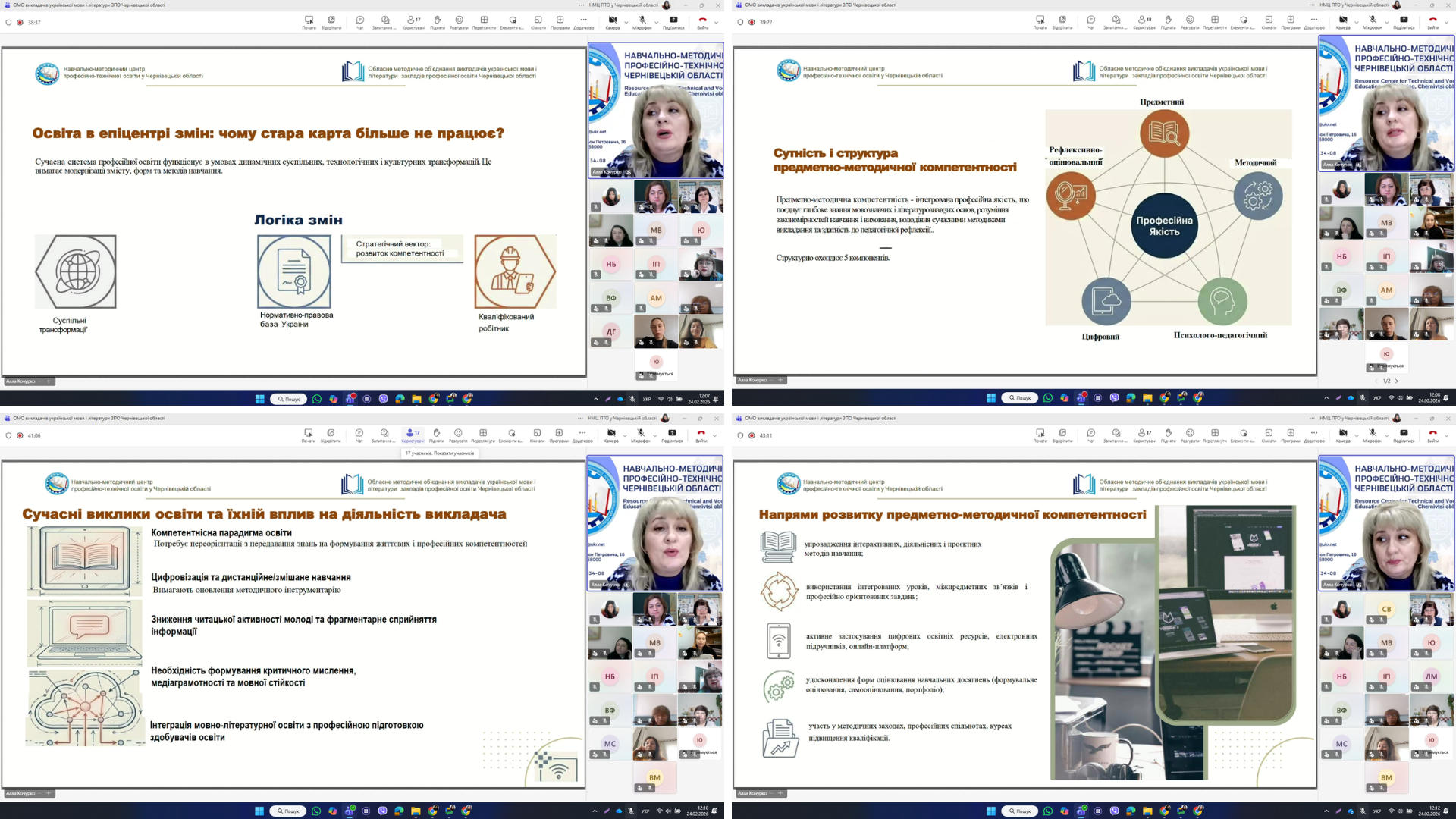 24 лютого 2026 року відповідно до плану роботи Навчально-методичного центру професійно-технічної освіти у Чернівецькій області на 2026 рік відбулося засідання обласного методичного об’єднання викладачів мовно-літературної галузі ЗПО області з проблеми «Удосконалення методів навчання як складник предметно-методичної компетентності викладачів української мови і літератури».