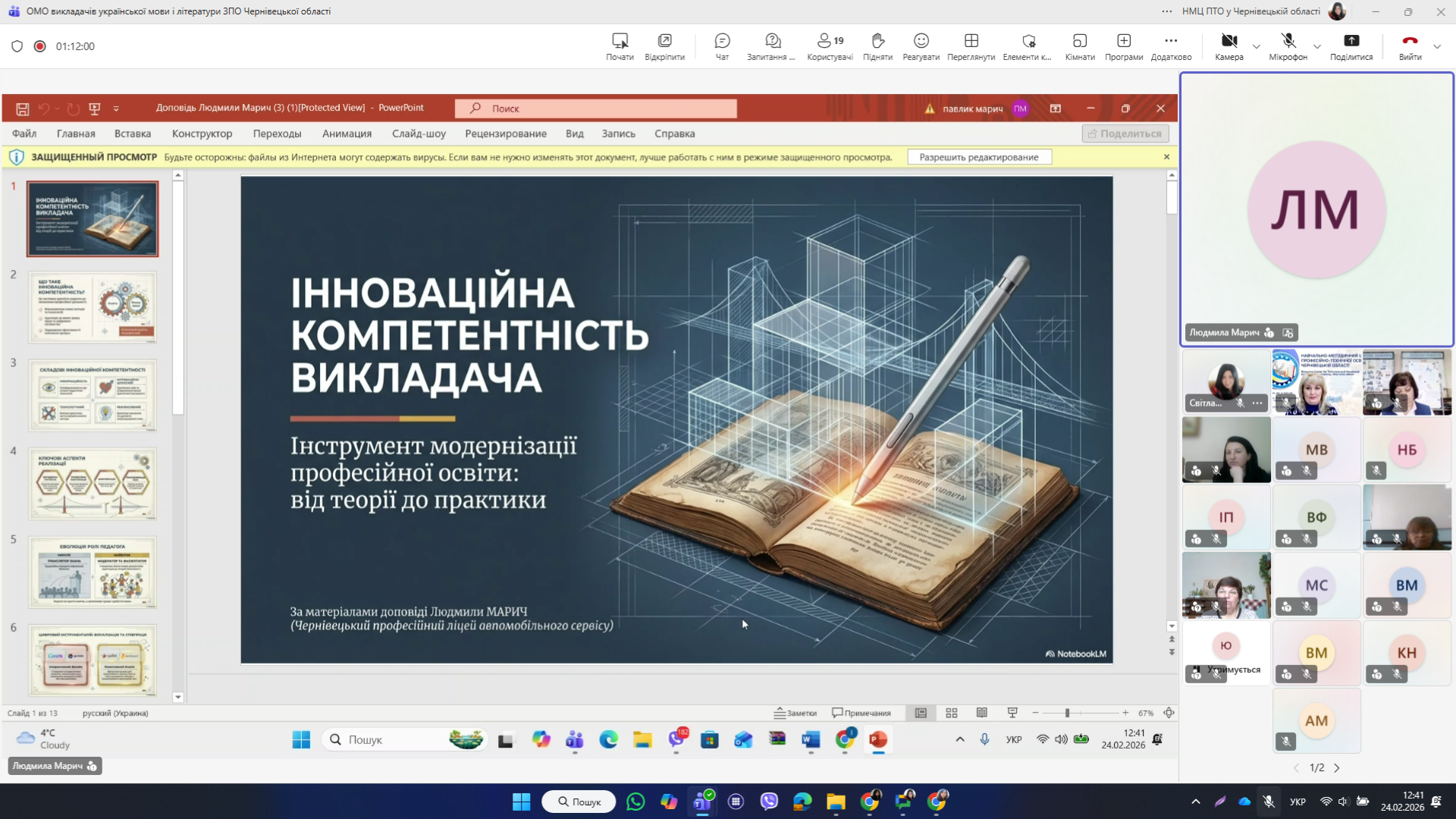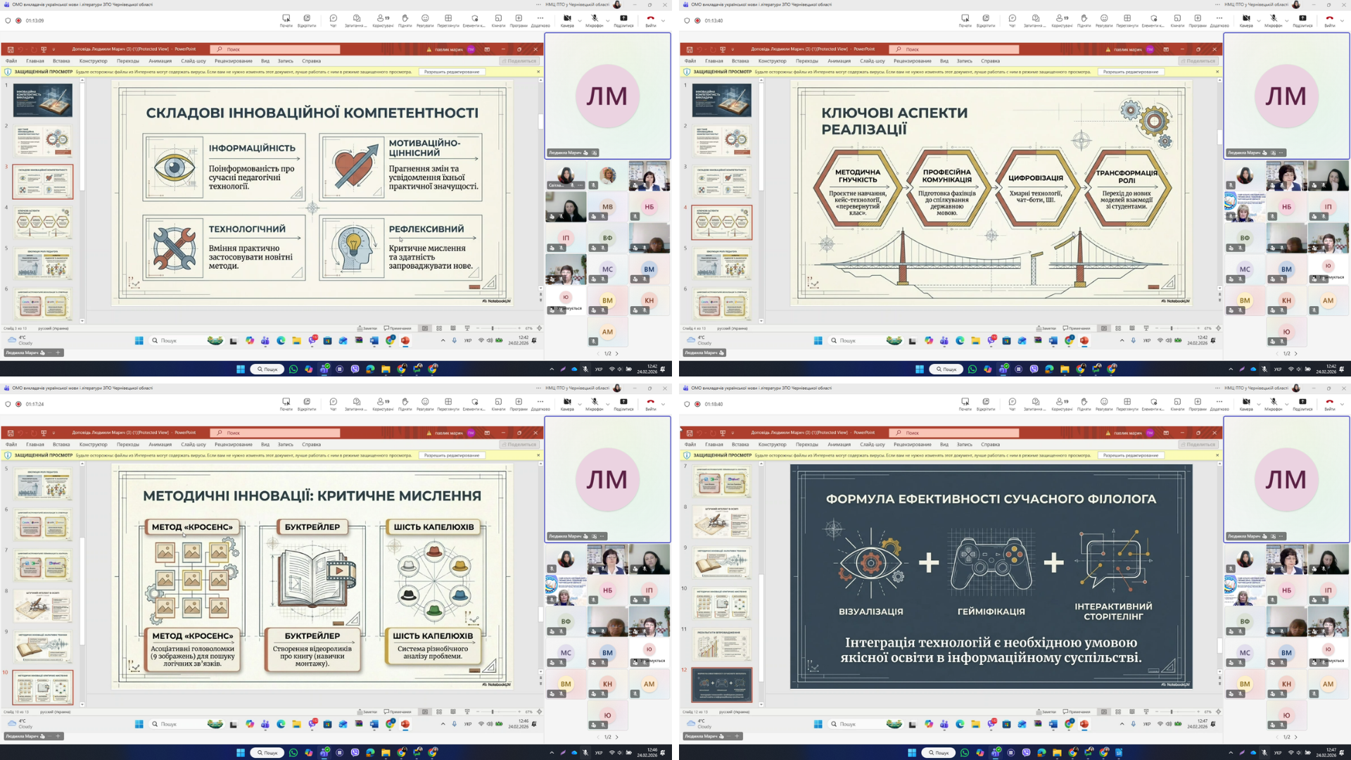 На інноваційній компетентності викладачів мовно-літературної галузі як одному з інструментів модернізації професійної освіти закцентувала увагу присутніх голова обласного методичного об’єднання викладачів української мови і літератури ЗПО, викладач-методист, викладач української мови і літератури Чернівецького професійного ліцею автомобільного сервісу Людмила МАРИЧ.