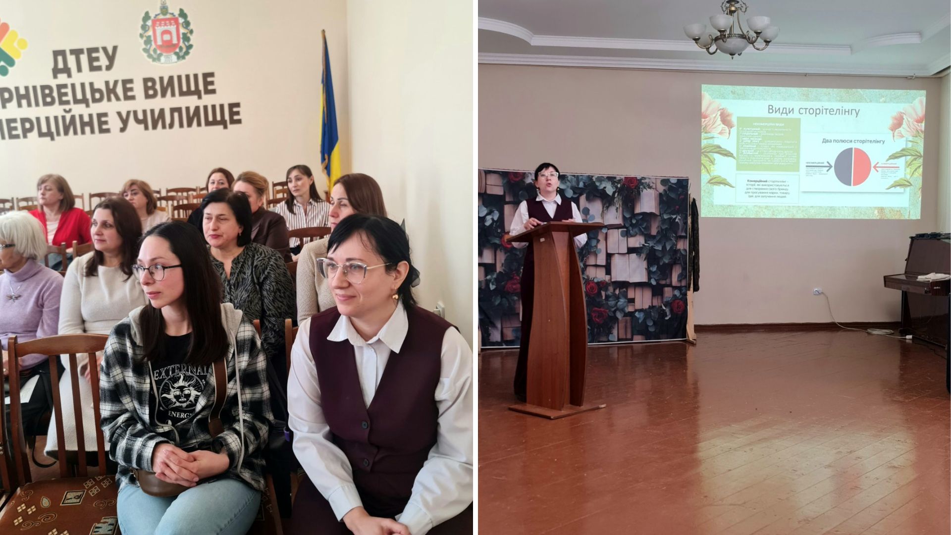 Практичну частину заходу продовжила Ірена Погребенник, викладач зарубіжної літератури Чернівецького вищого комерційного училища ДТЕУ, кандидат філологічних наук. Вона поділилася досвідом використання сторітелінгу на уроках мовно-літературної освітньої галузі. Викладач продемонструвала, як через живі історії та емоційне залучення можна ефективно мотивувати сучасних студентів до вивчення класики.