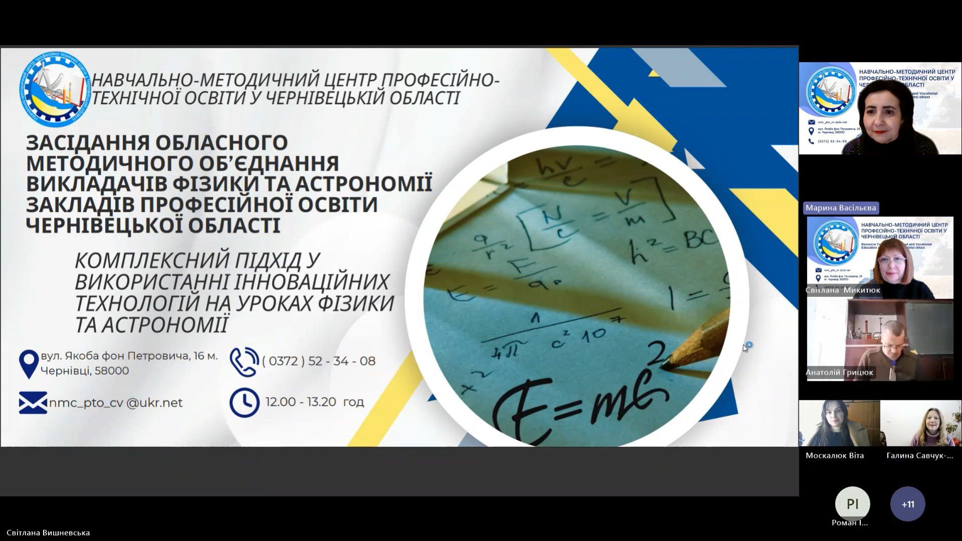 2 квітня 2026 року, відповідно до плану роботи Навчально-методичного центру професійно-технічної освіти у Чернівецькій області на 2026 рік, відбулося засідання секції обласного методичного об’єднання викладачів фізики та астрономії закладів ПО Чернівецької області. Тема засідання «Комплексний підхід у використанні інноваційних технологій на уроках фізики та астрономії.