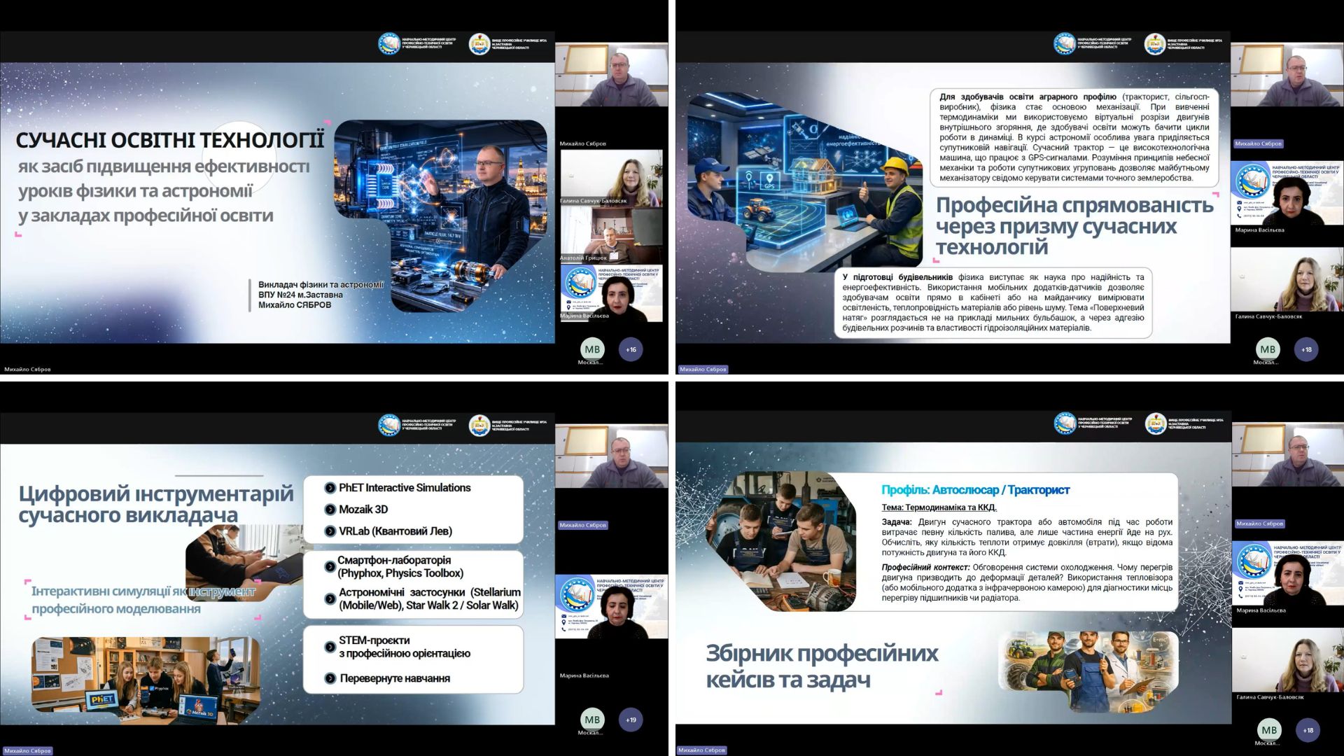 Михайло СЯБРОВ, викладач фізики та астрономії ВПУ №24 м. Заставна презентував тему «Сучасні освітні технології, як засіб підвищення ефективності уроків фізики та астрономії у закладах професійної освіти.