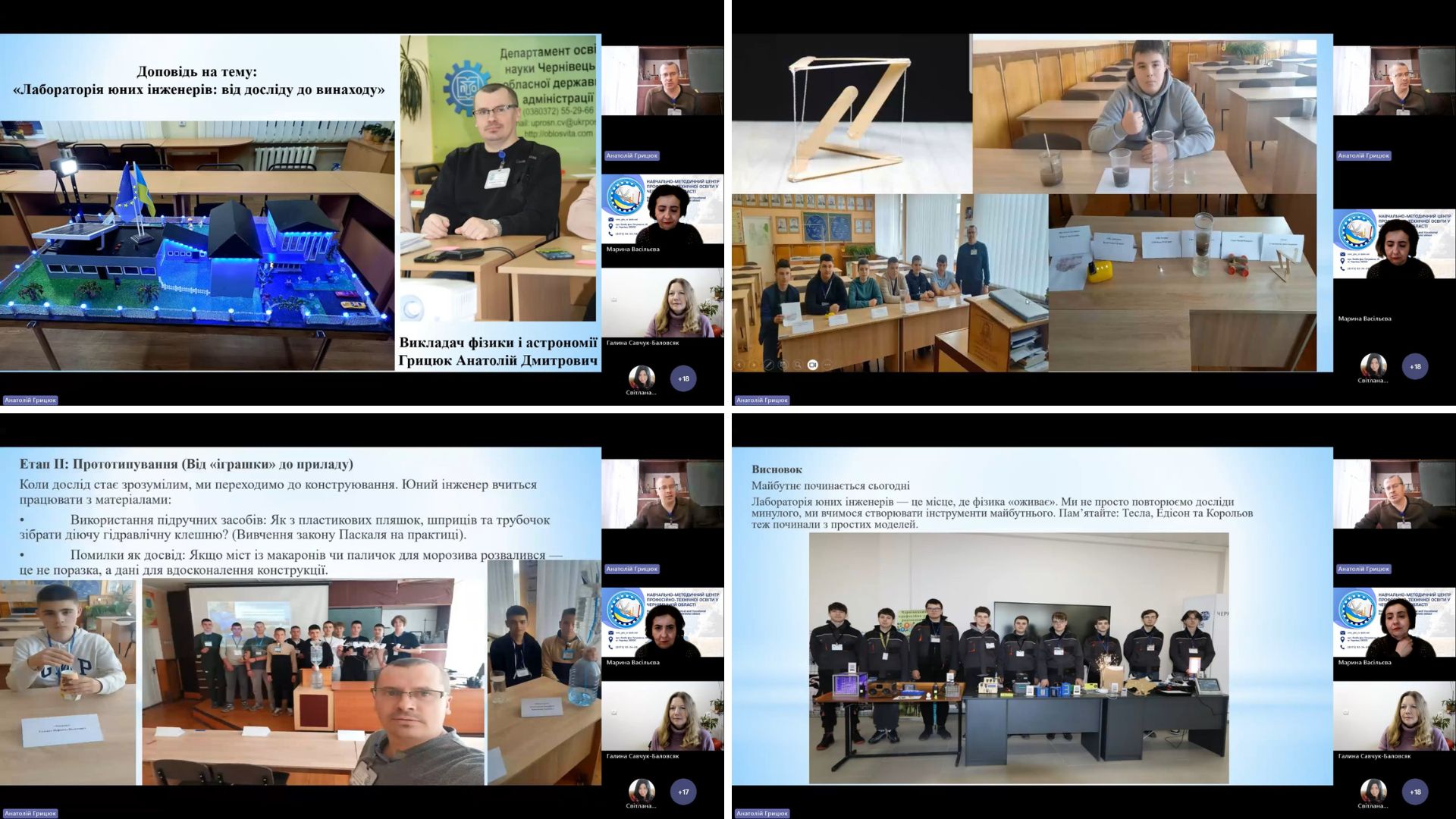 Анатолій ГРИЦЮК, викладач фізики та астрономії ЧВПУР представив колегам власний досвід роботи лабораторії юних інженерів.