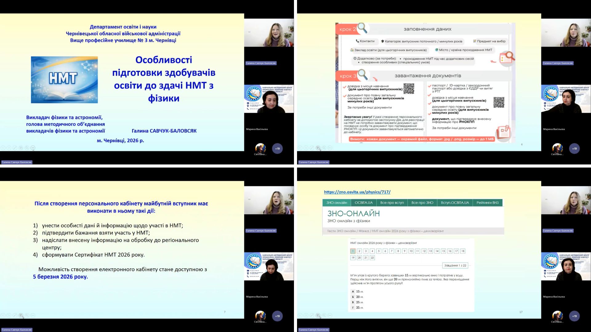 Галина САВЧУК-БАЛОВСЯК, викладач фізики та астрономії ВПУ №3, голова методичного об’єднання викладачів фізики та астрономії висвітлила тему «Особливості підготовки студентів до здачі НМТ з фізики».