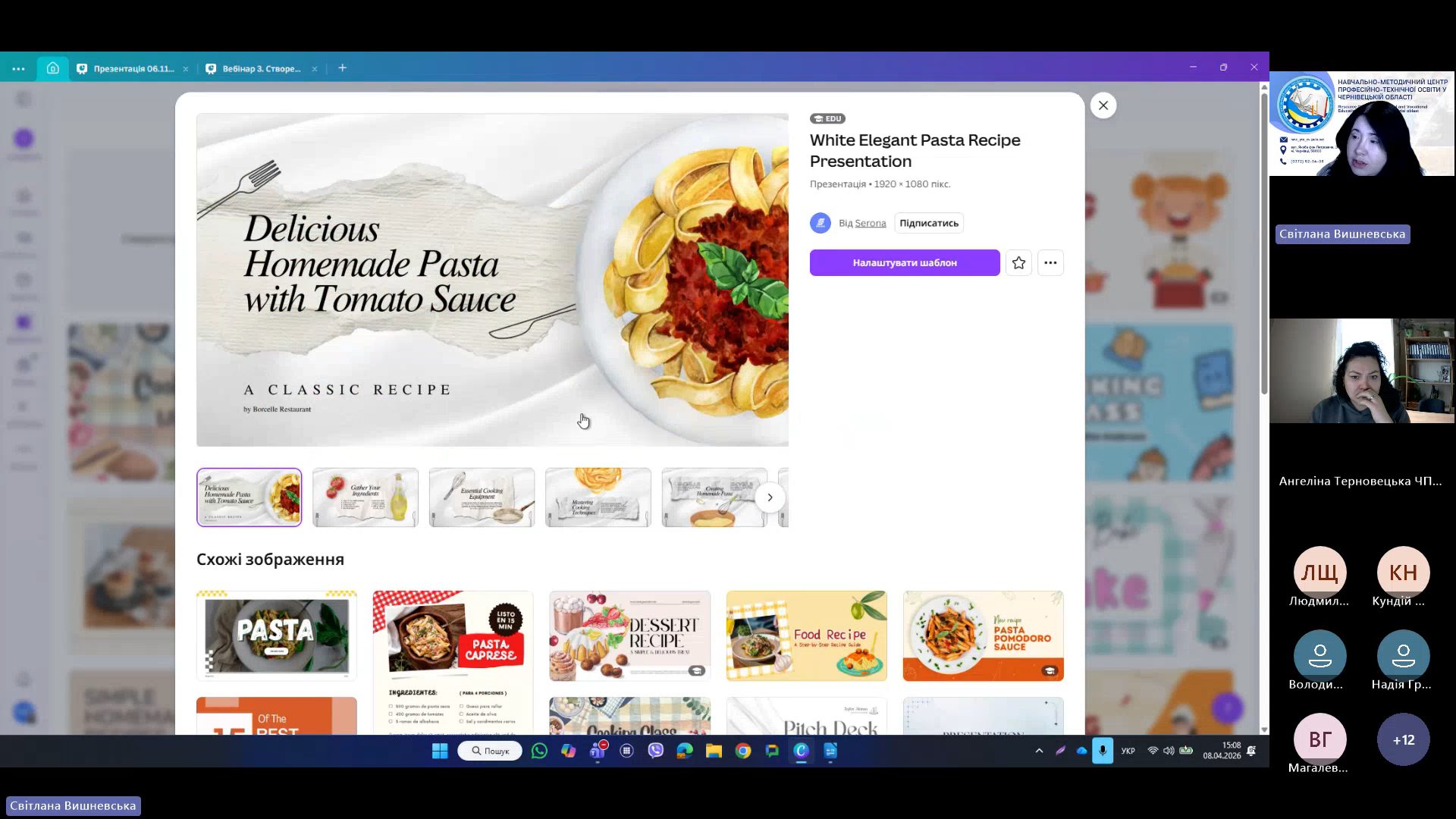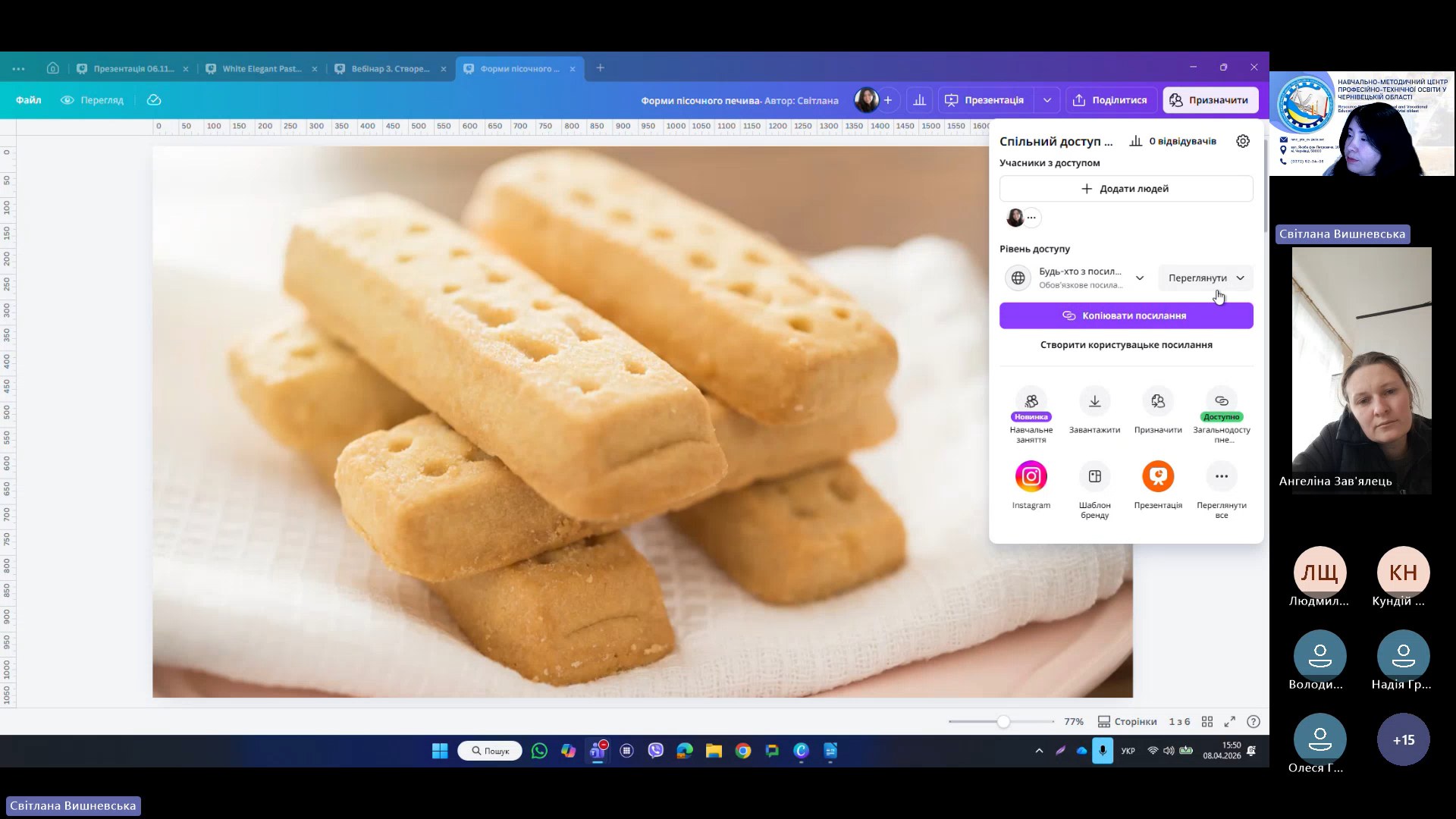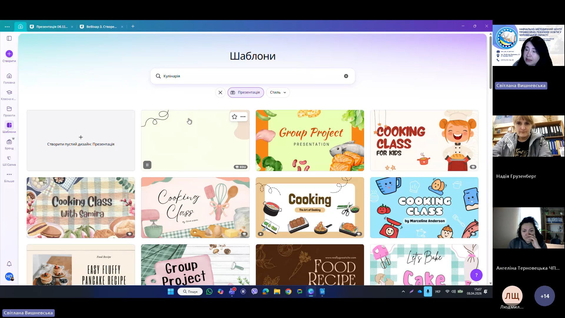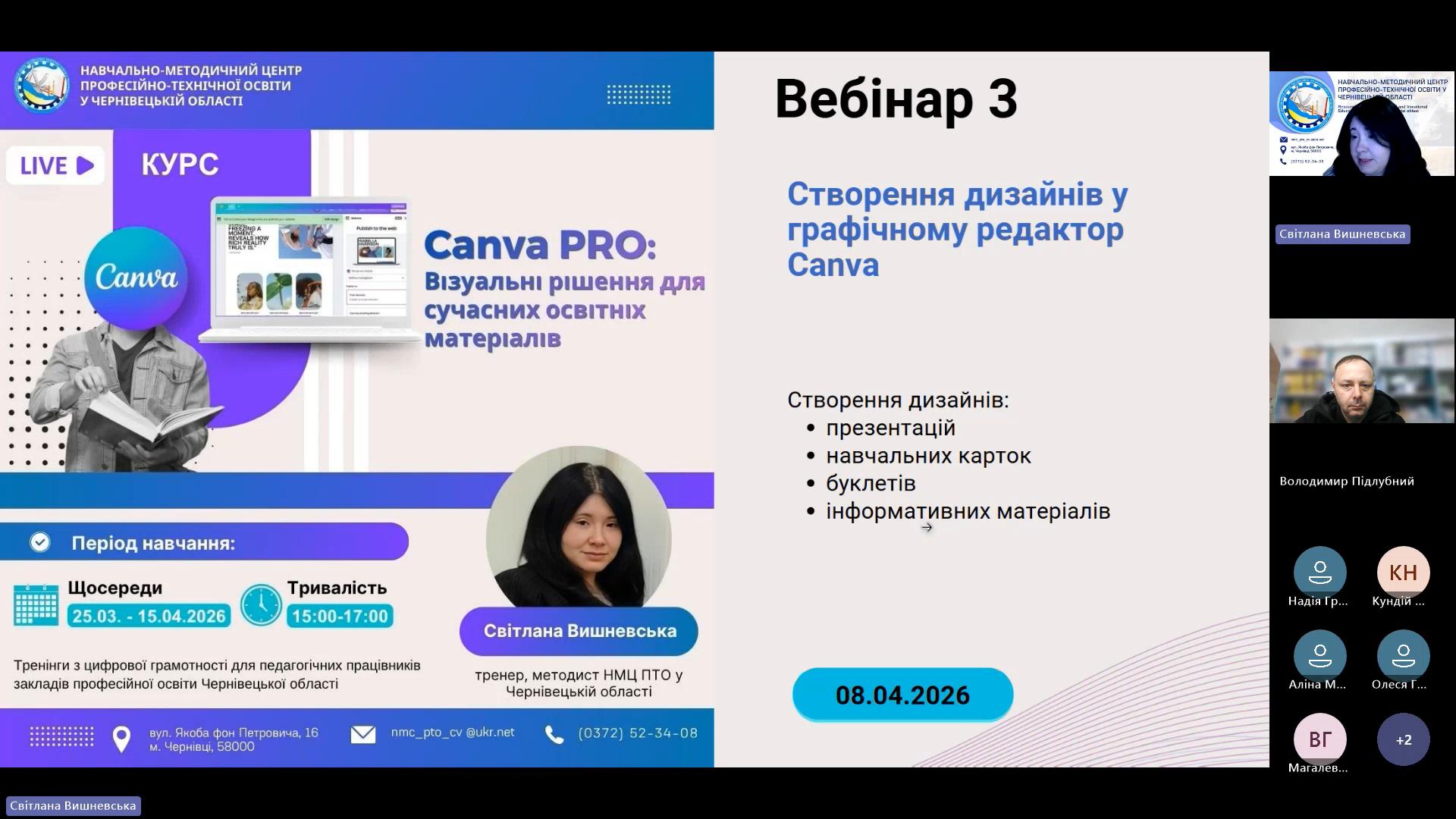 8 квітня 2026 року відповідно до плану роботи Навчально-методичного центру професійно-технічної освіти у Чернівецькій області на 2026 рік та програми курсу «𝗖𝗮𝗻𝘃𝗮 𝗣𝗥𝗢: Візуальні рішення для сучасних освітніх матеріалів», відбувся черговий вебінар для педагогічних працівників ЗПО.