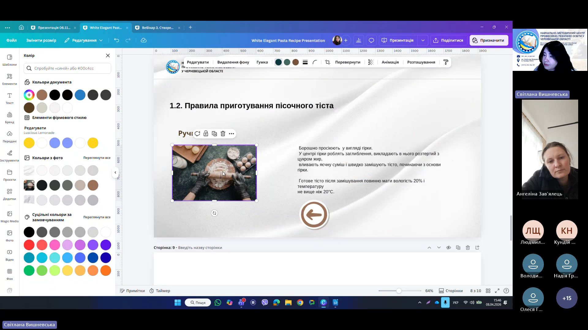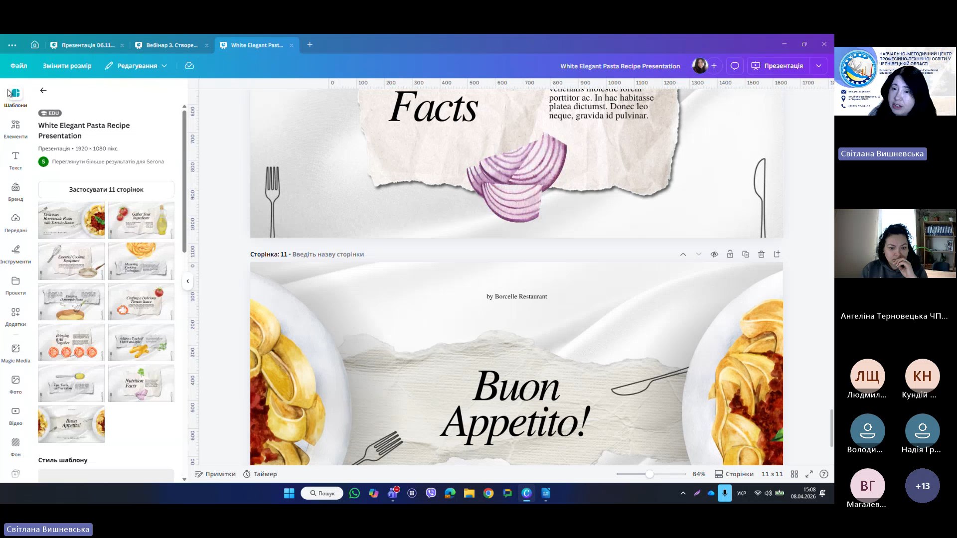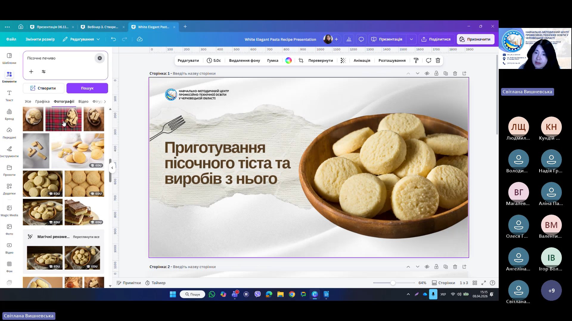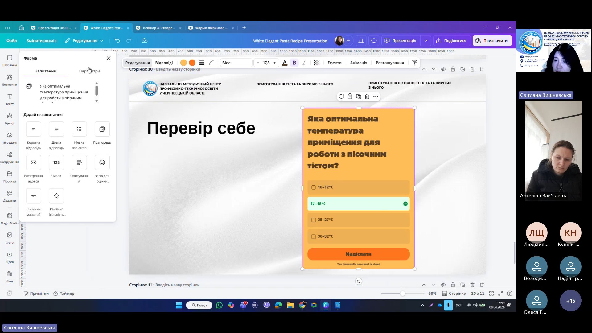 8 квітня 2026 року відповідно до плану роботи Навчально-методичного центру професійно-технічної освіти у Чернівецькій області на 2026 рік та програми курсу «𝗖𝗮𝗻𝘃𝗮 𝗣𝗥𝗢: Візуальні рішення для сучасних освітніх матеріалів», відбувся черговий вебінар для педагогічних працівників ЗПО.