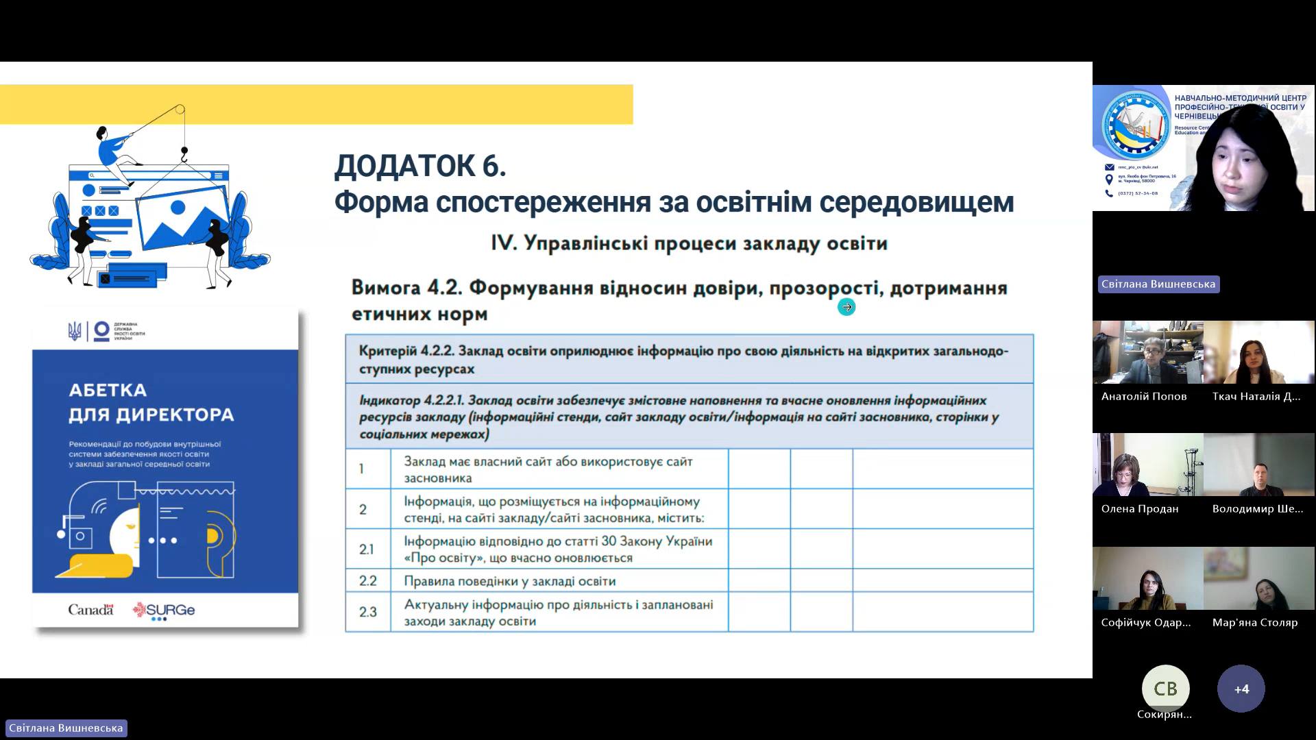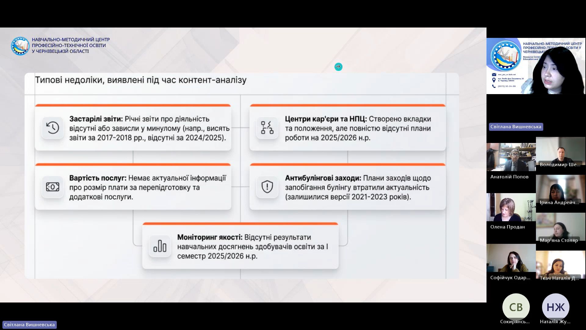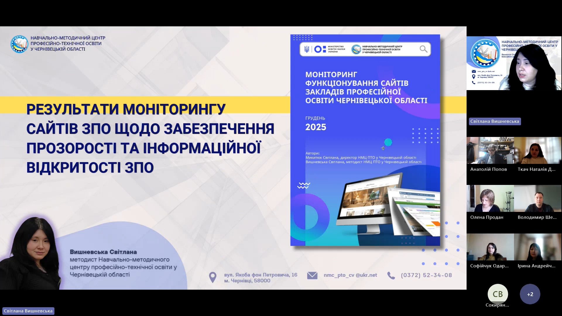 Під час засідання методист Центру, Світлана Вишневська, представила учасникам результати моніторингу функціонування сайтів ЗПО області, проведеного у грудні 2025 року.
