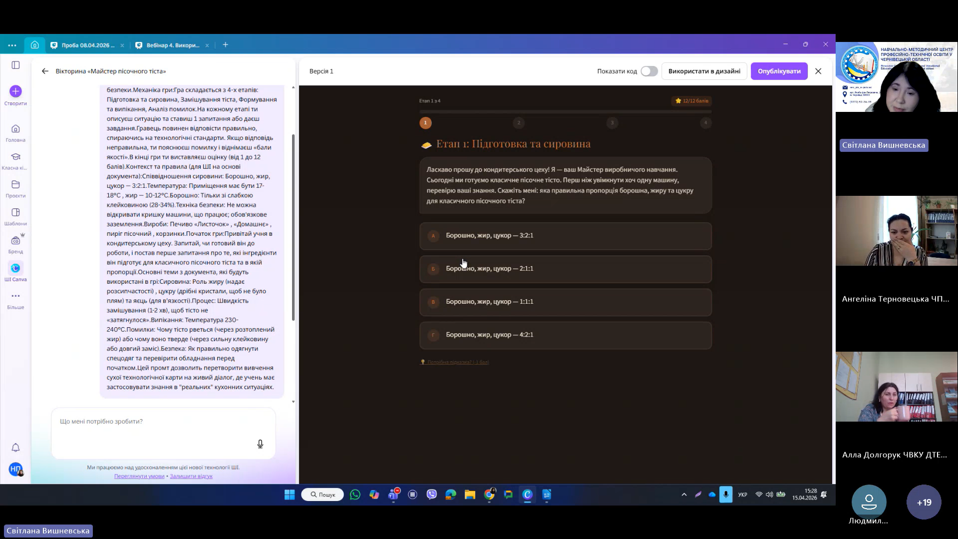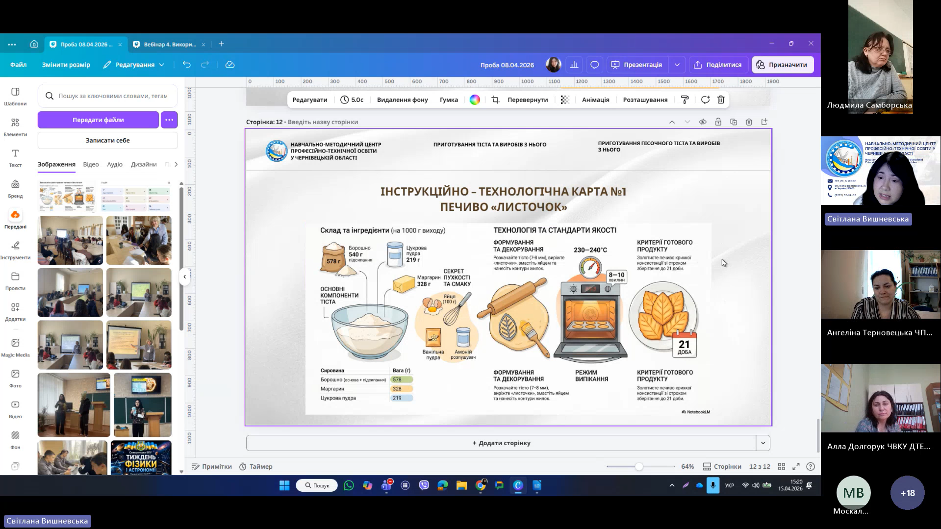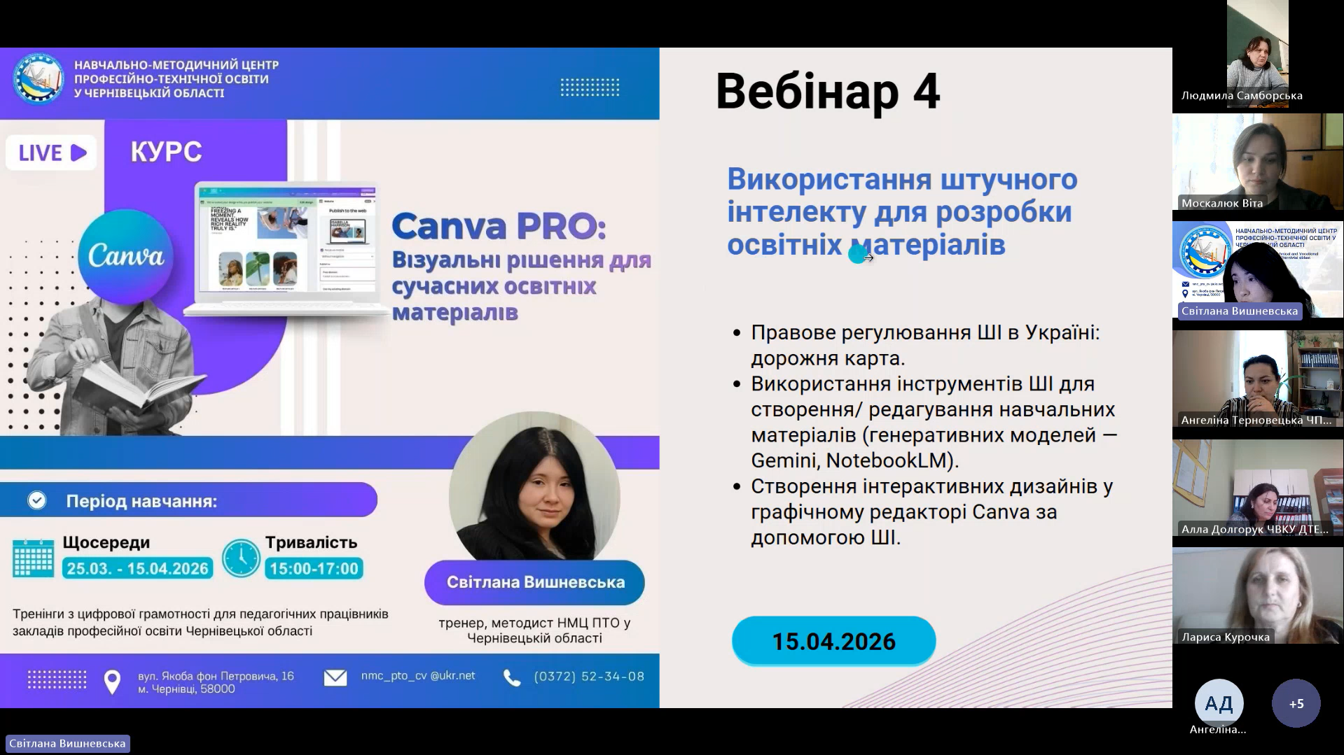 15 квітня 2026 року відповідно до плану роботи Навчально-методичного центру професійно-технічної освіти у Чернівецькій області на 2026 рік та програми курсу «𝗖𝗮𝗻𝘃𝗮 𝗣𝗥𝗢: Візуальні рішення для сучасних освітніх матеріалів», відбувся фінальний вебінар для педагогічних працівників ЗПО.