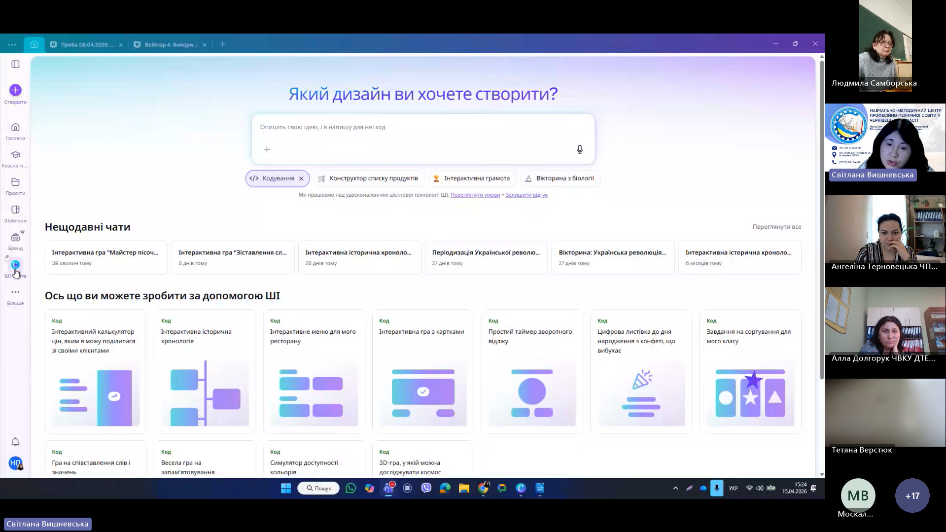 - Дізналися про можливості графічного редактора 𝗖𝗮𝗻𝘃𝗮 на основі ШІ — генерація інтерактивних дизайнів, навіть без навичок професійного програмування: ігри, вікторини, картки.